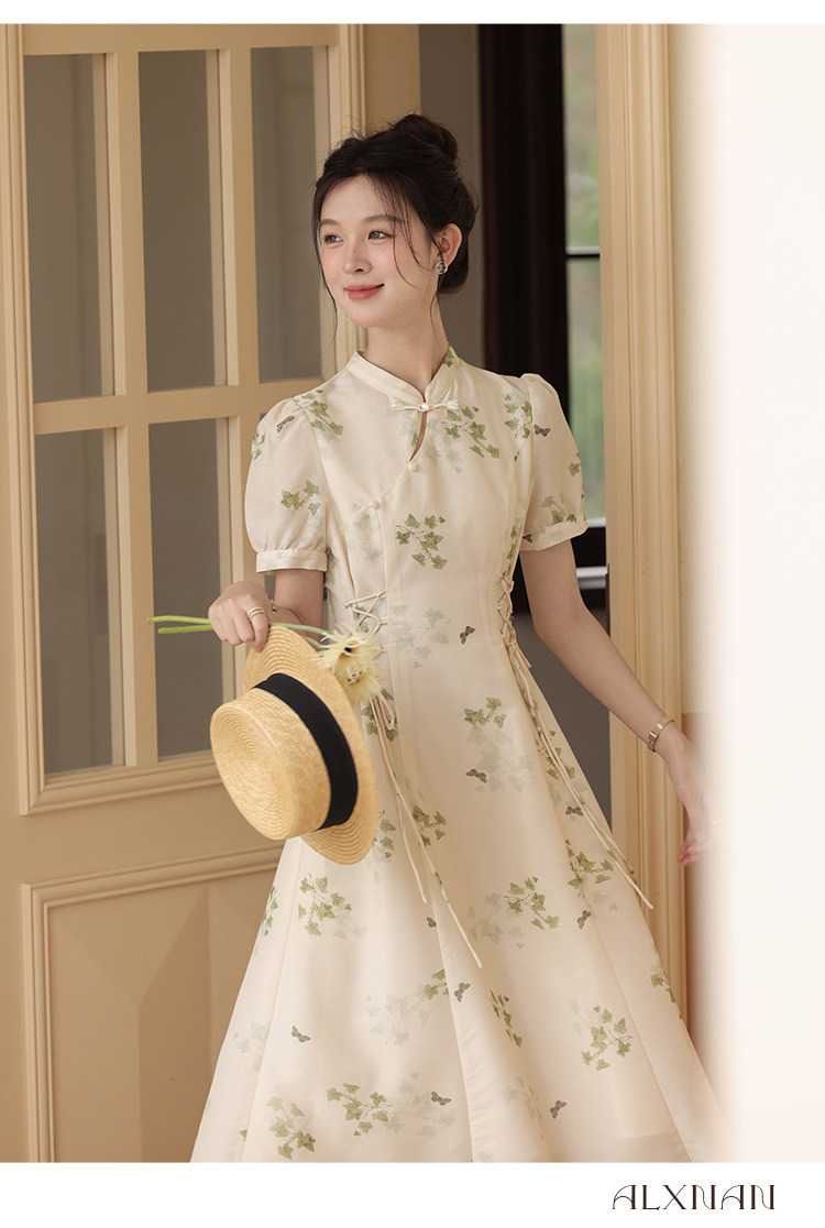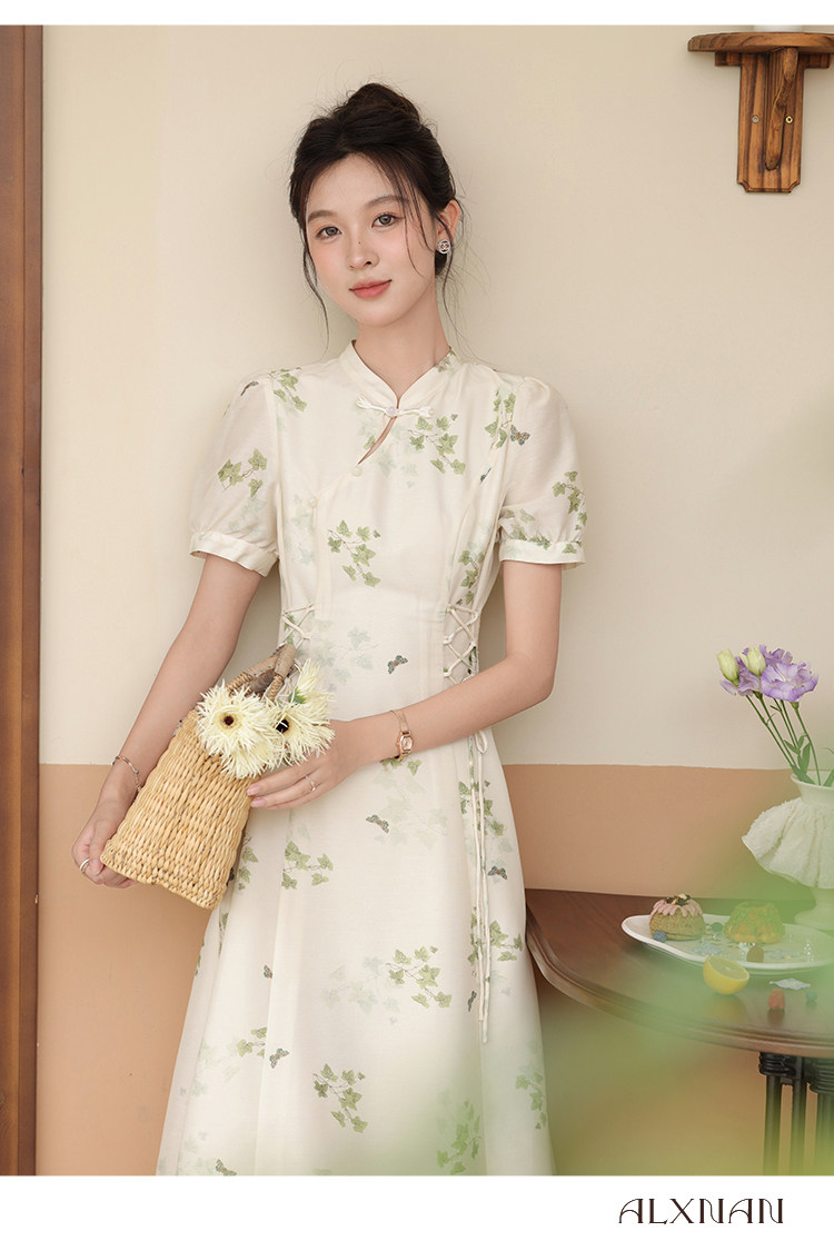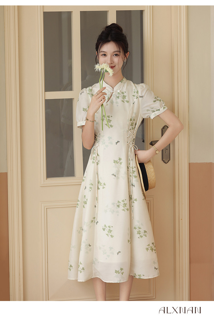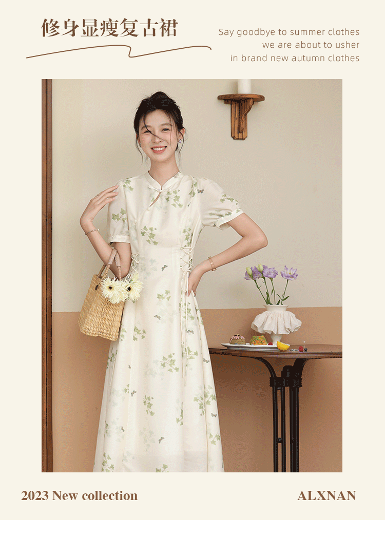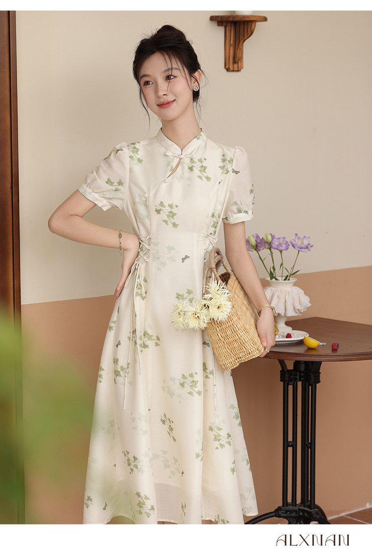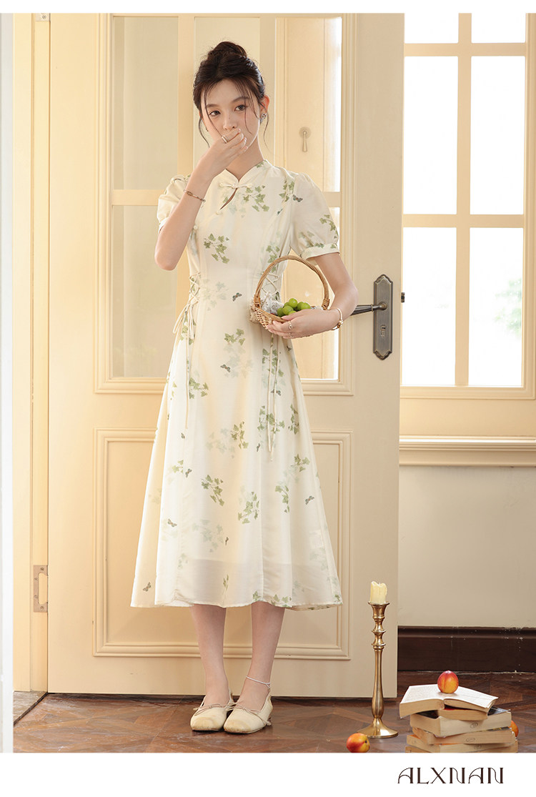 鹿向南 Летнее приталенное ретро платье, китайский стиль, цветочный принт, 2023