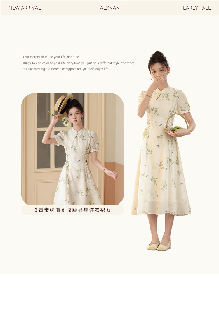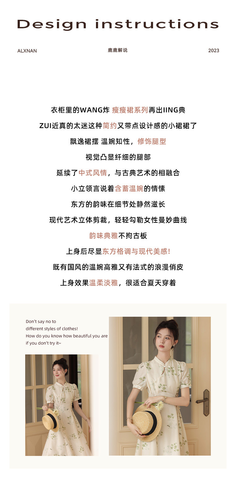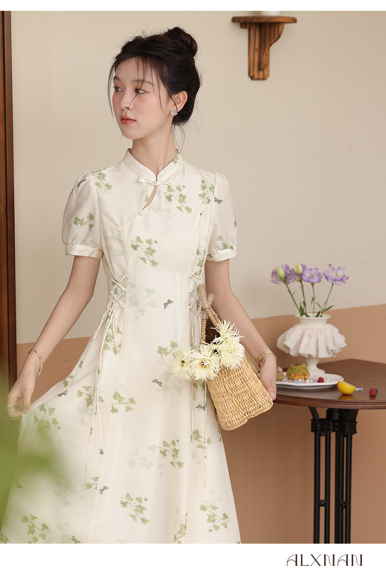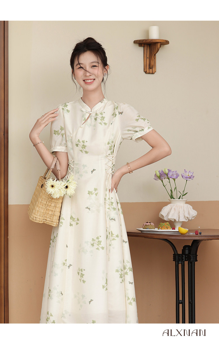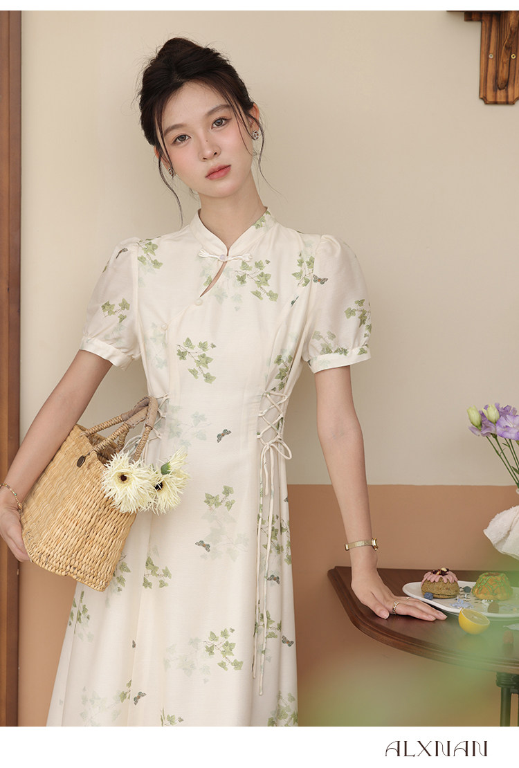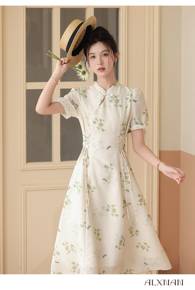 鹿向南 Летнее приталенное ретро платье, китайский стиль, цветочный принт, 2023