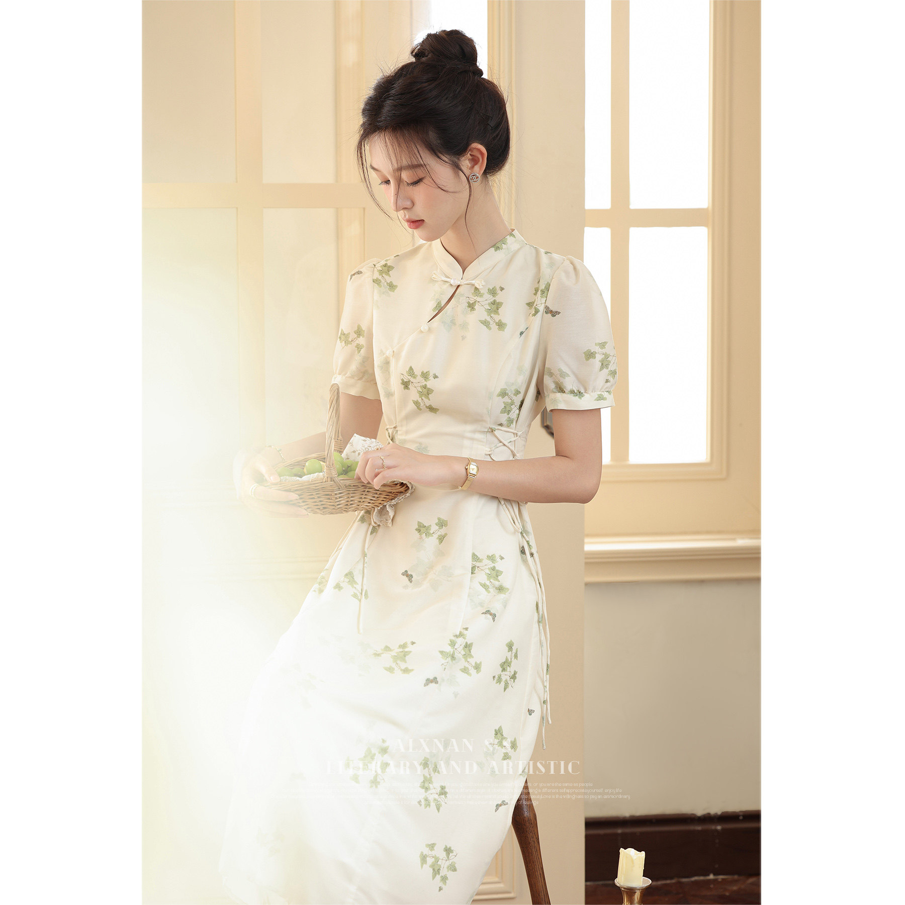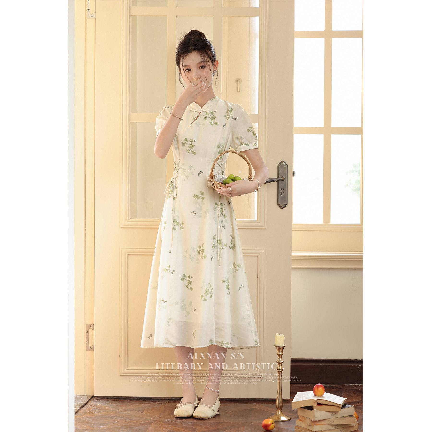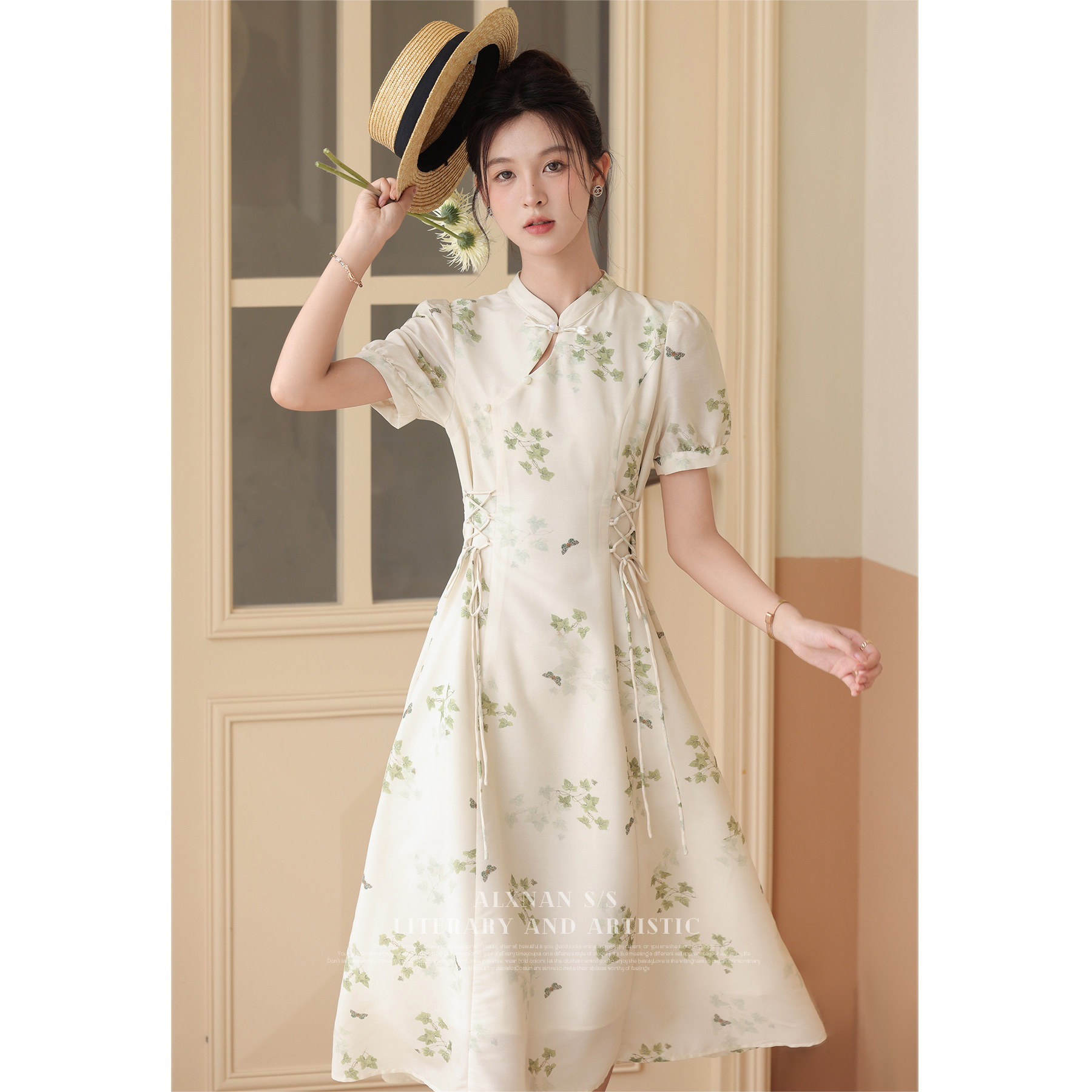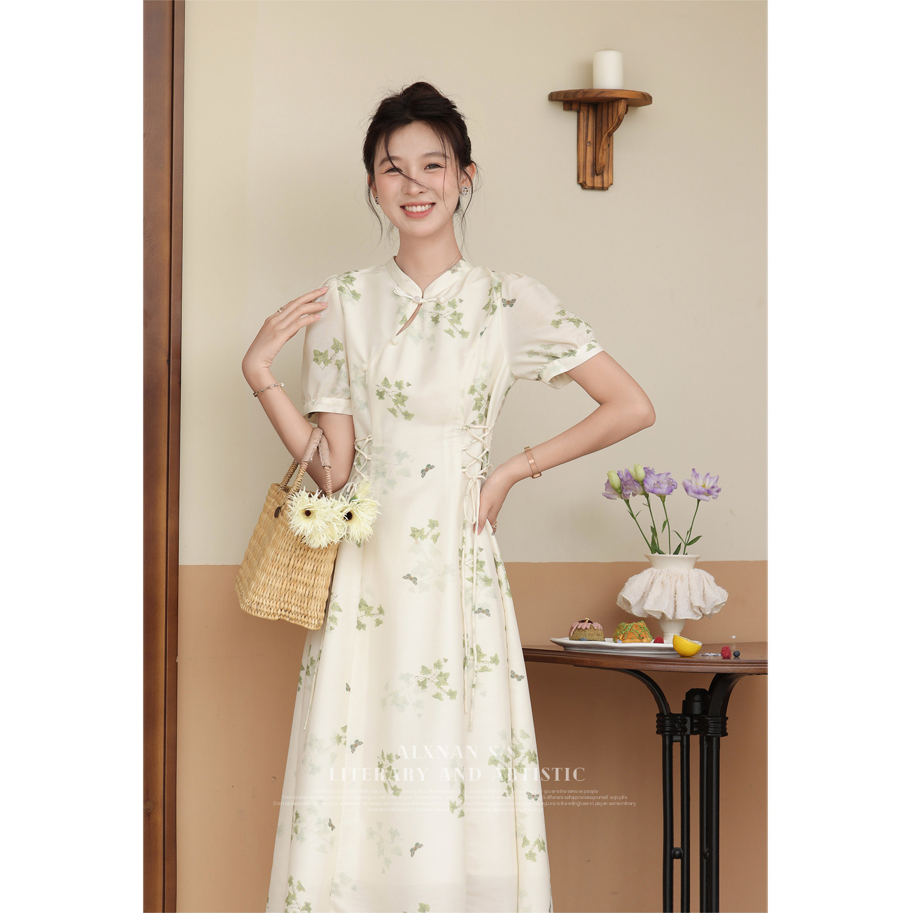 鹿向南 Летнее приталенное ретро платье, китайский стиль, цветочный принт, 2023