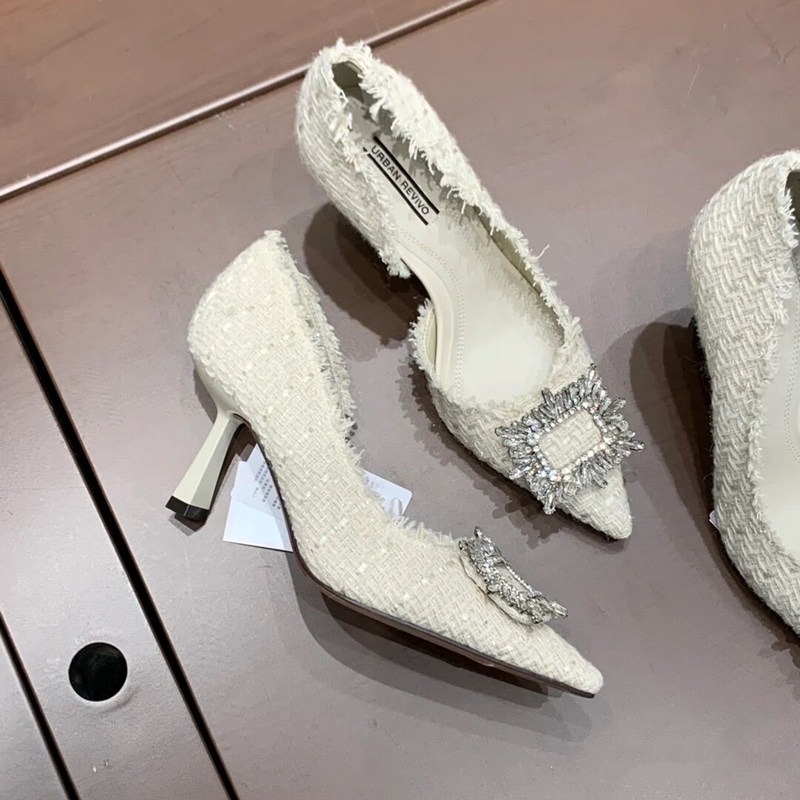Весенние летние универсальные белые туфли на высоком каблуке с заостренным носом на высоком каблуке, французский стиль, 23 года, в стиле Шанель