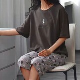 Сладкий пижамский костюм лето 2023 Новый мультипликационный футболка с коротким рукавом длинные брюки Домашний набор для сочинок с двумя частями.