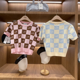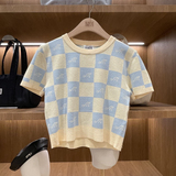 Модные универсальные трикотажные шахматы с круглым воротником, Южная Корея, этнический стиль, городской стиль