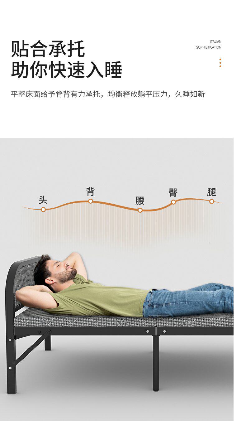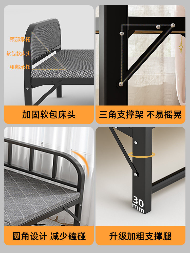 Односпальная кровать домохозяйственная складная кровать, перерыв на обеденный перерыв, кровать для кровати на твердой доске 1,2 метра подкрепление и кровать простая портативная железная кровать
