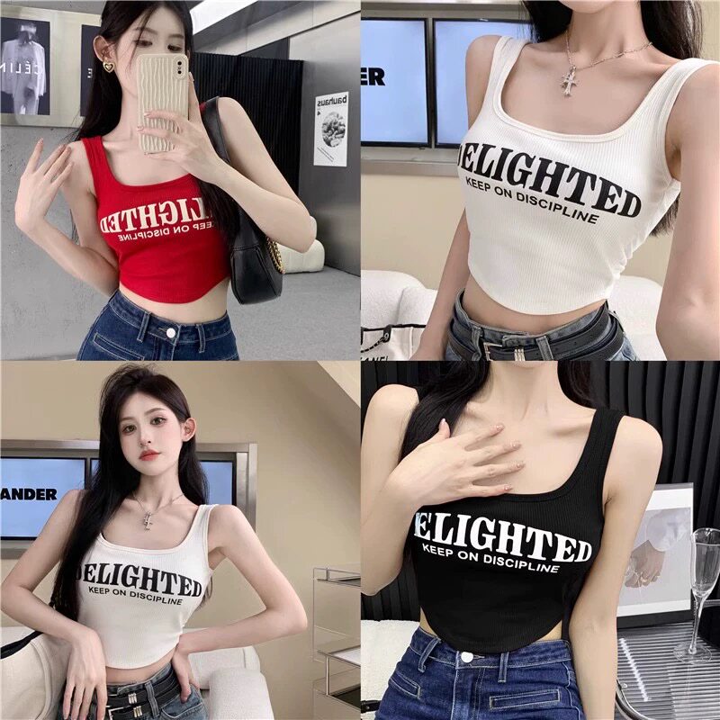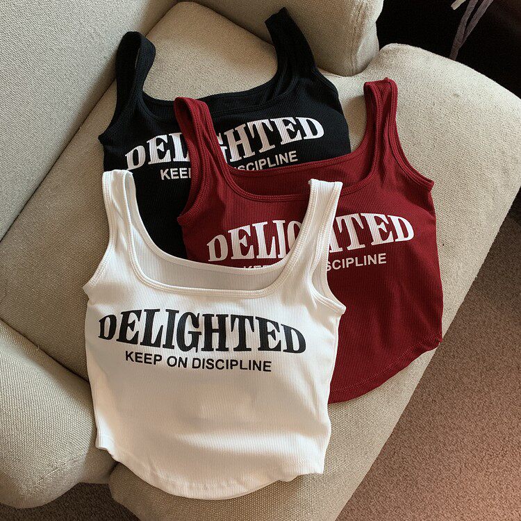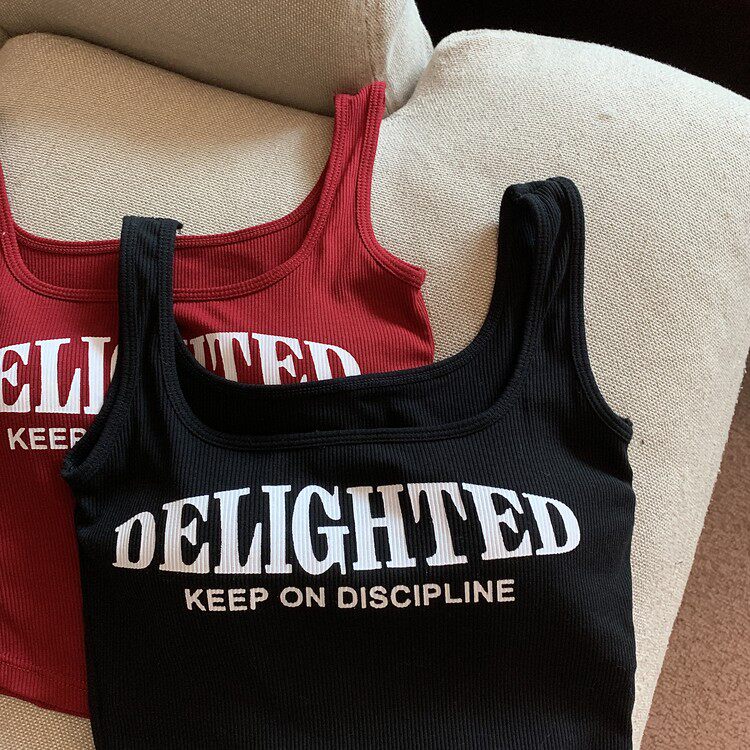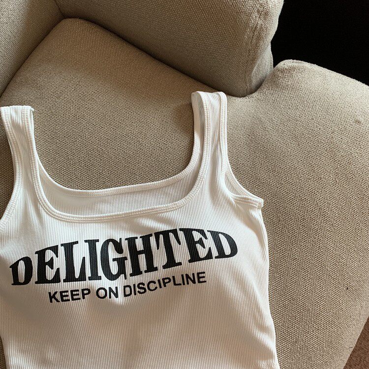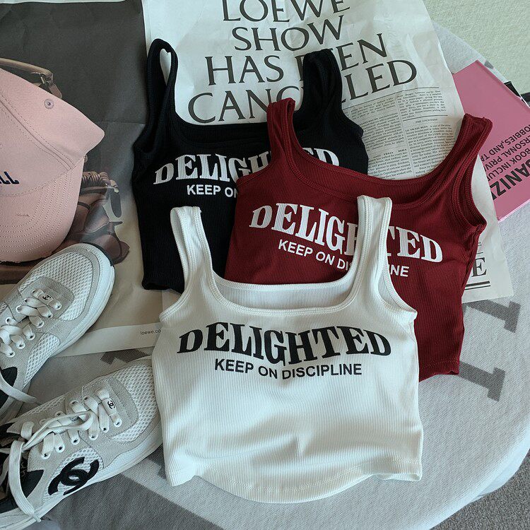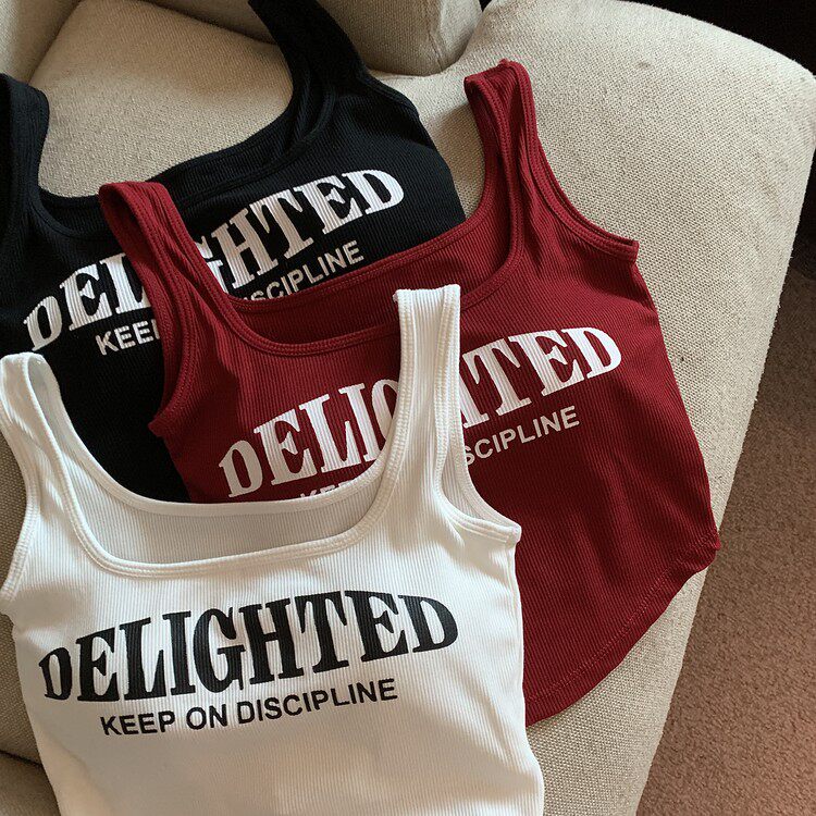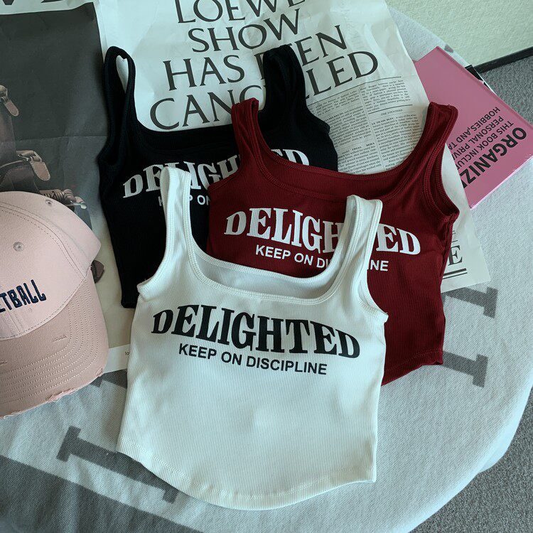 Топ с чашечками с буквами, вставки в бюстгальтер, бюстгальтер-топ, летняя майка, ретро короткое белье для повседневной носки, эффект подтяжки, в американском стиле