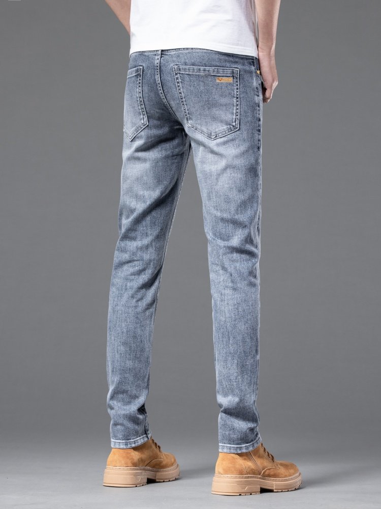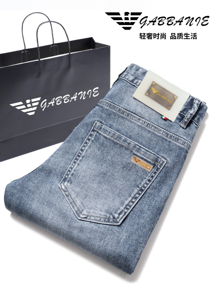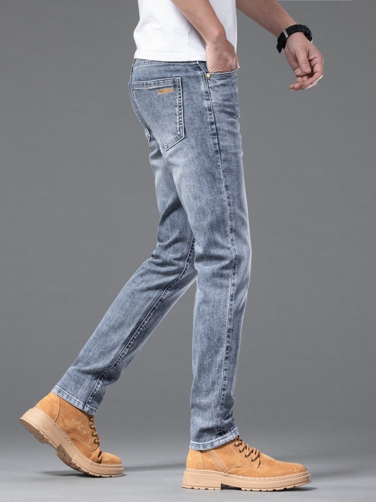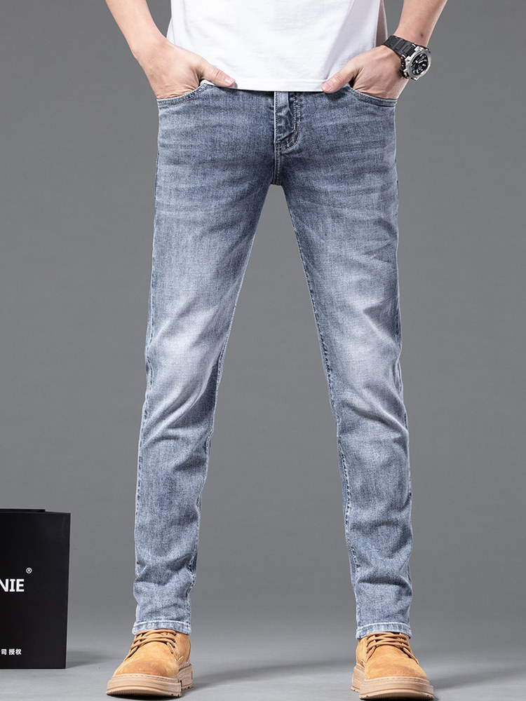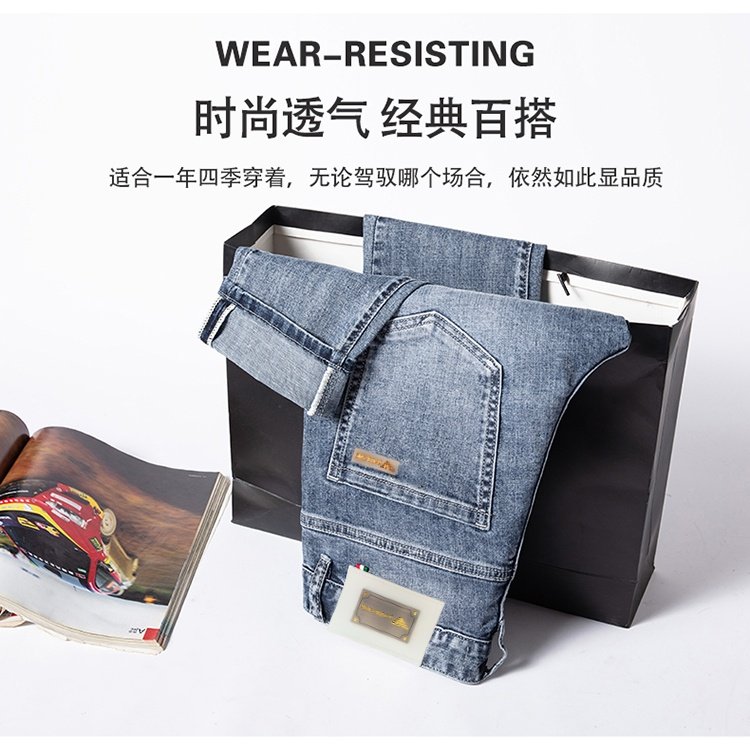 Эластичные джинсы для отдыха, повседневные брюки, Гонконг, облегающий крой, свободный прямой крой