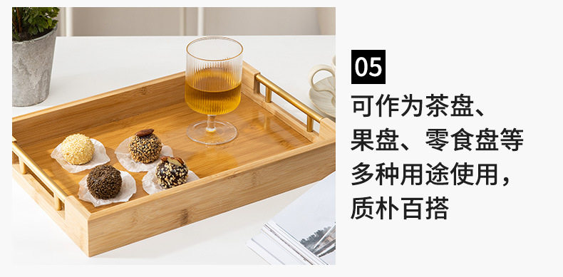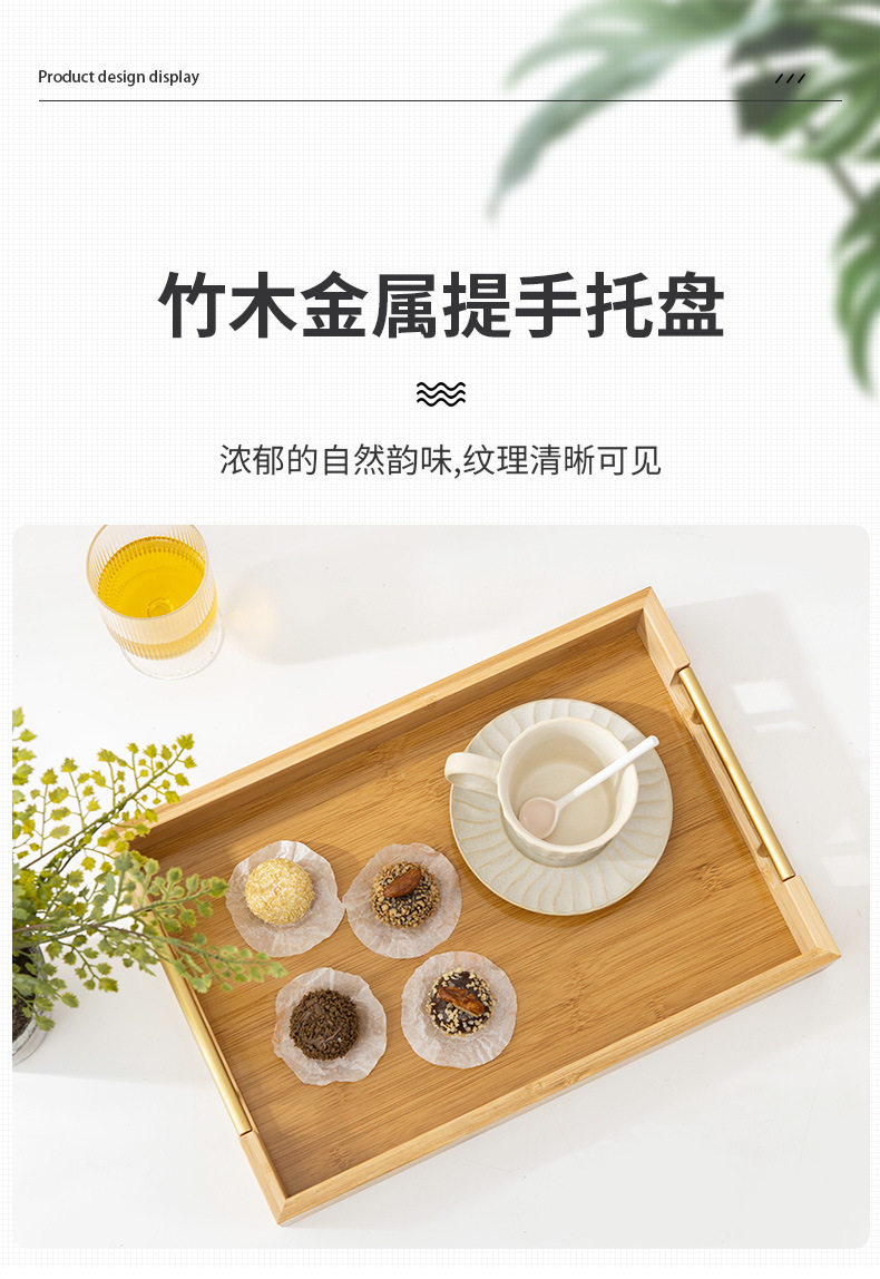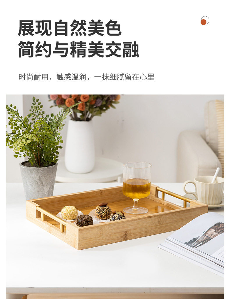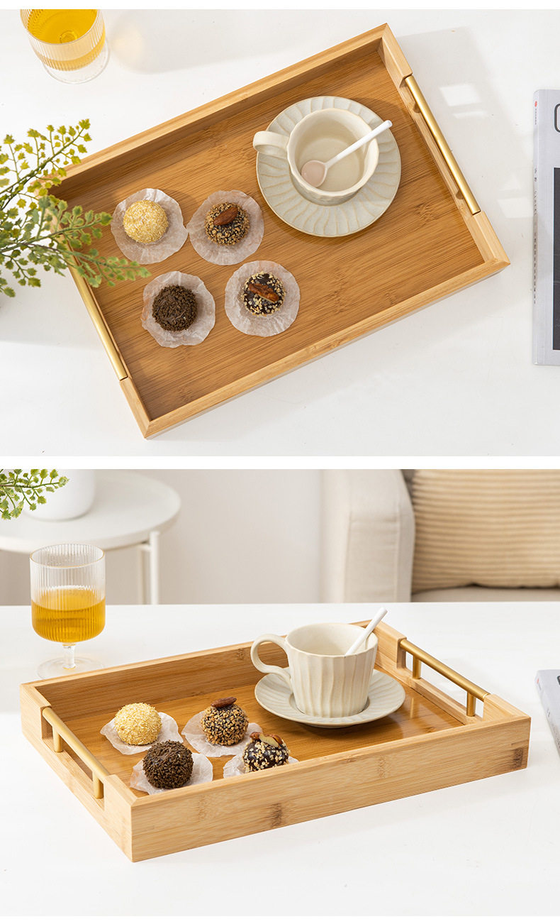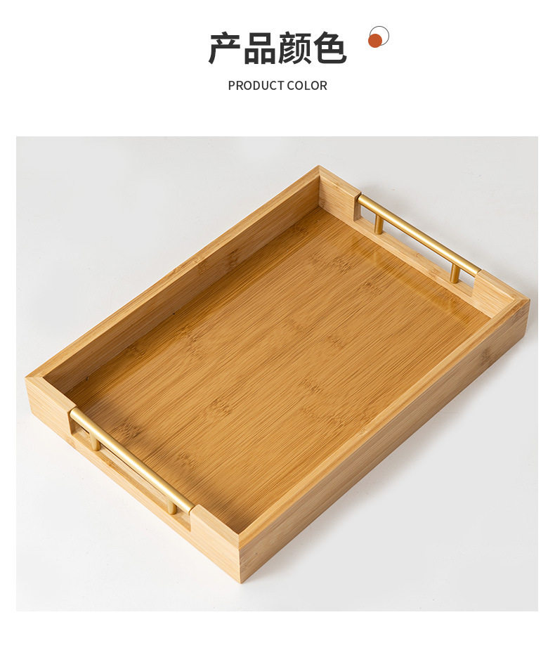 Простой прямоугольный бамбук деревянный поднос домашний хлеб -фрукты лоток металлический ручка
