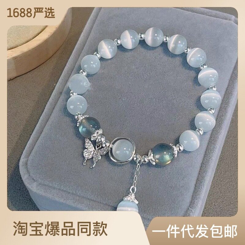 Сапфировый брендовый небольшой дизайнерский браслет из кварца из натурального камня, кварц для друга, кошачий глаз, подарок для девушки