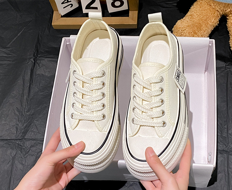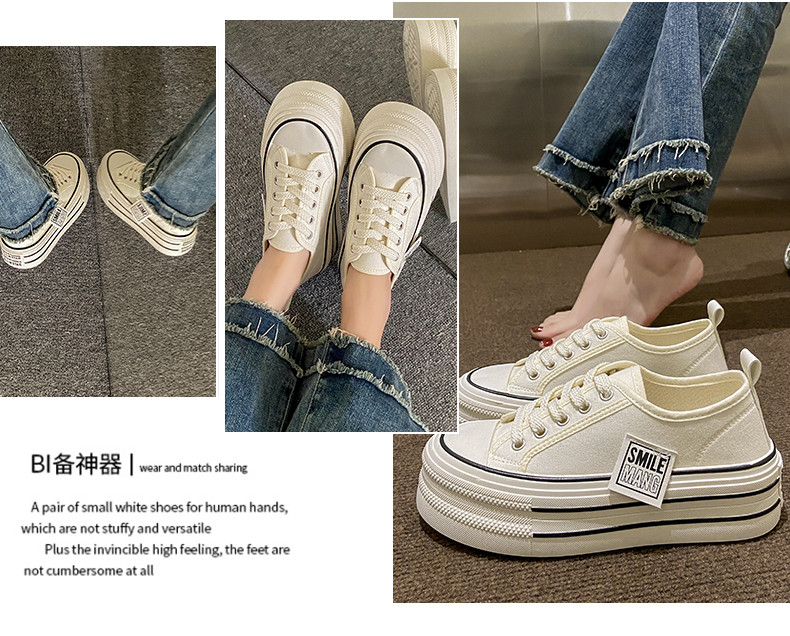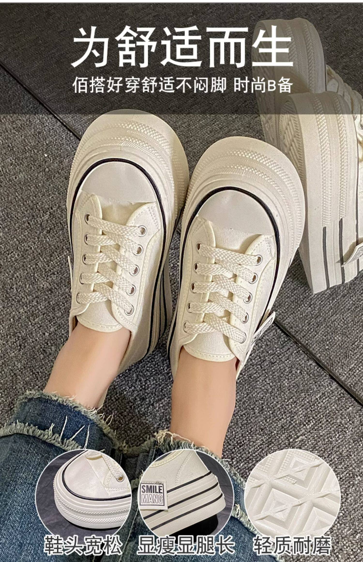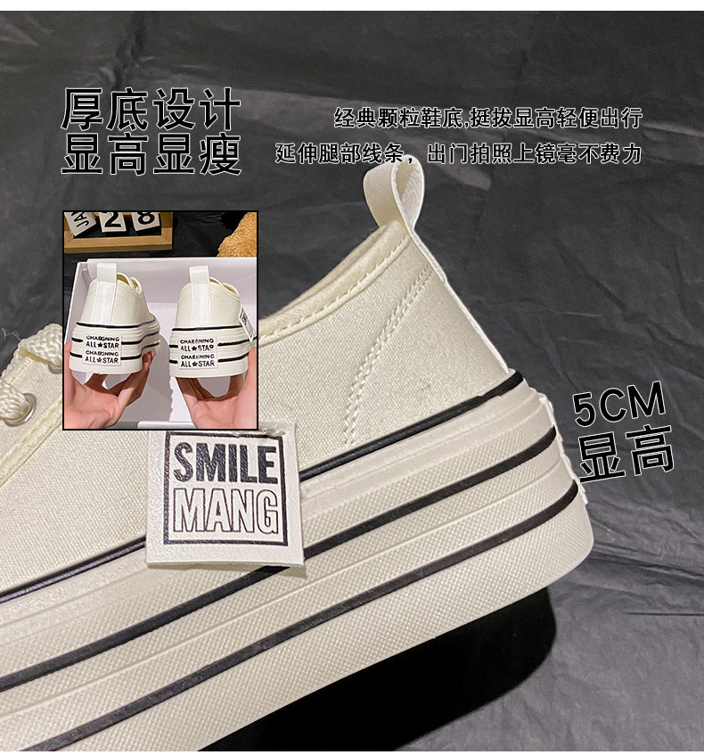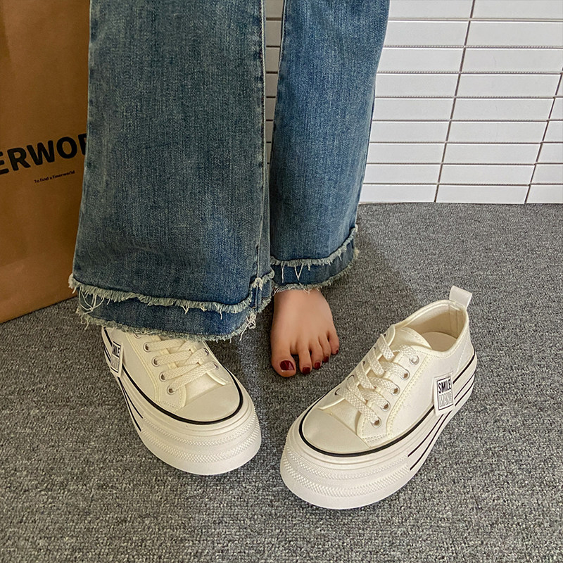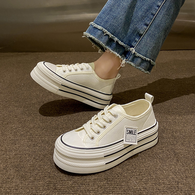 Тканевая летняя универсальная высокая спортивная обувь на платформе, кроссовки, белая обувь
