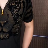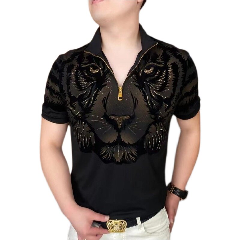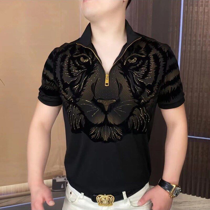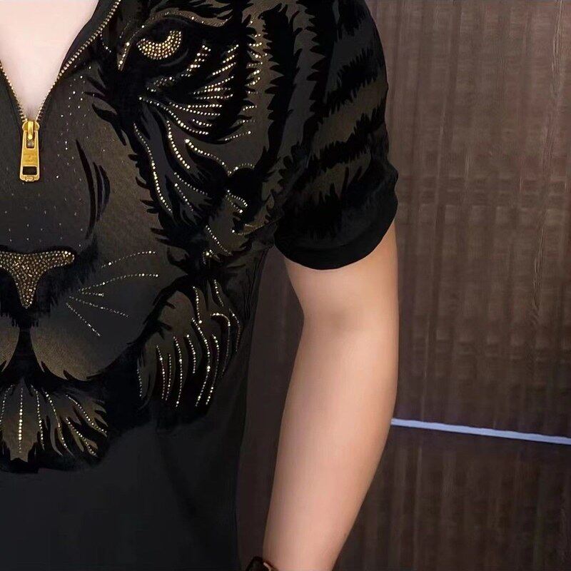 Летняя приталенная модная футболка с коротким рукавом с молнией, на молнии