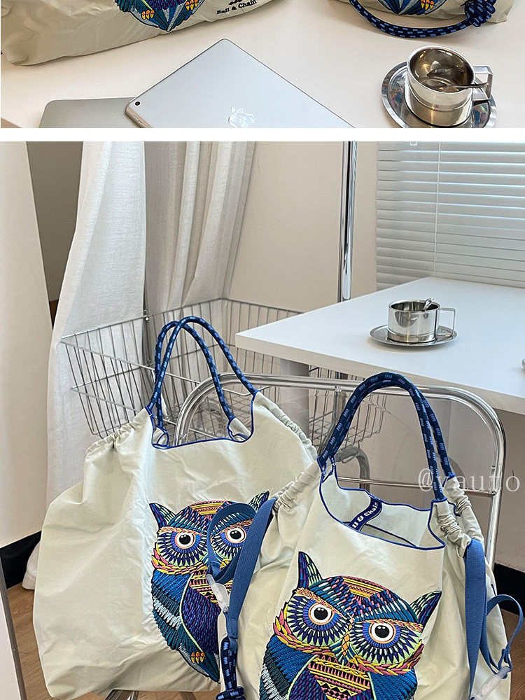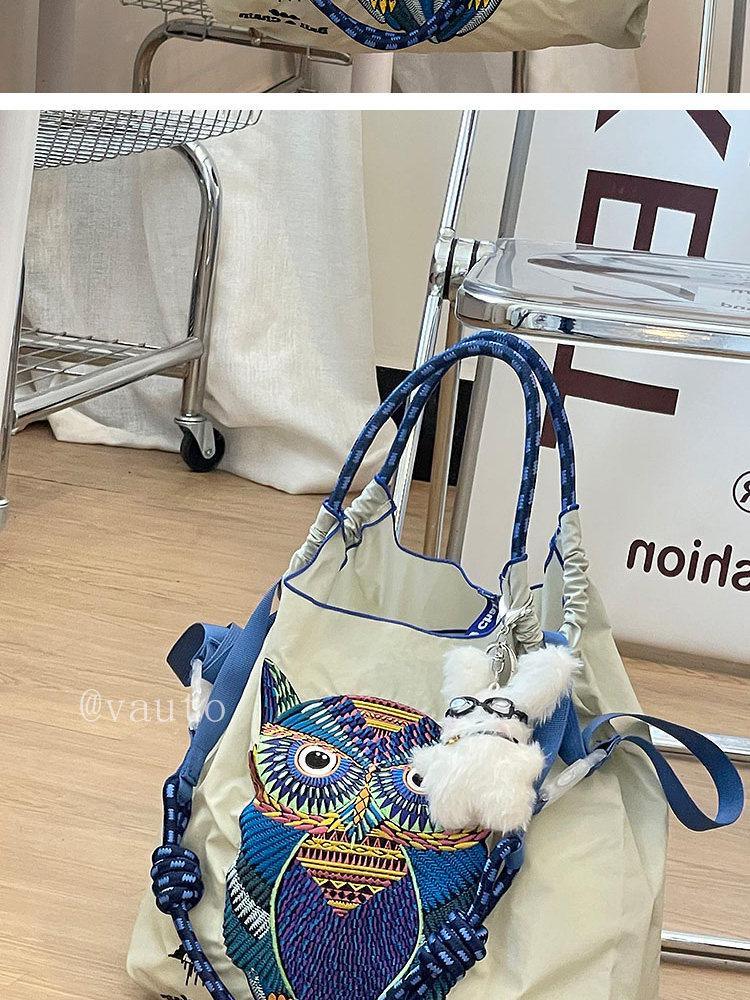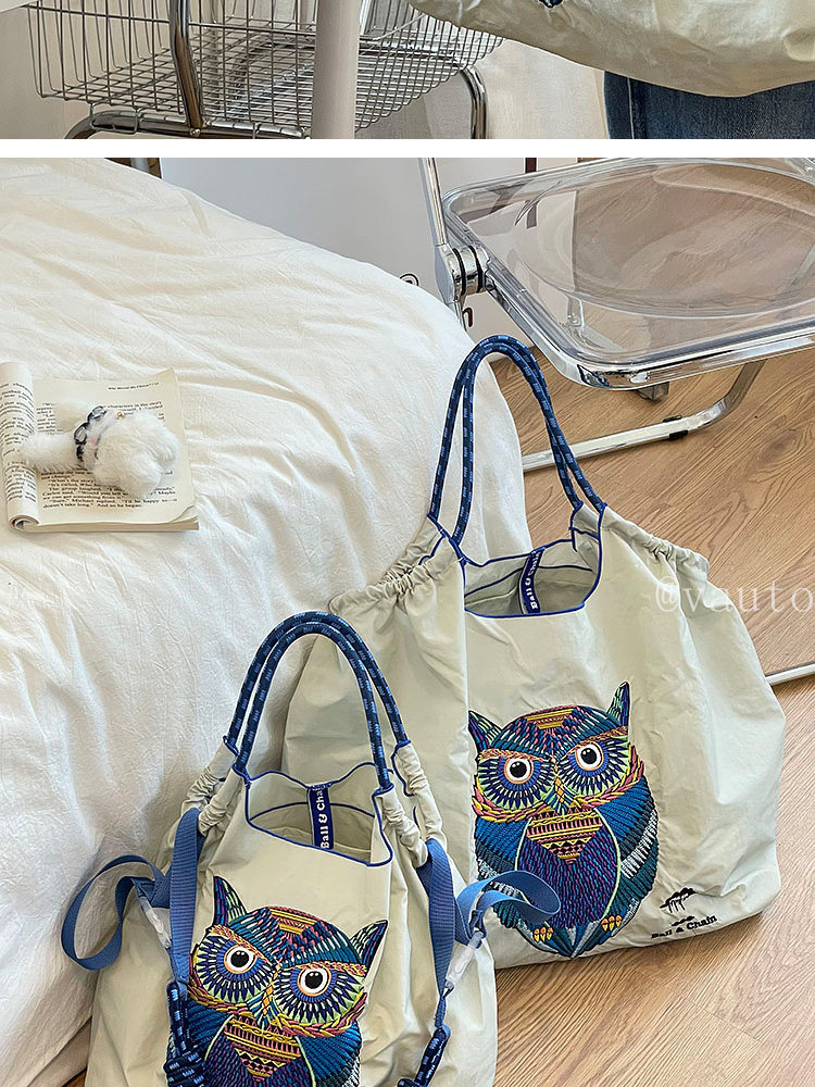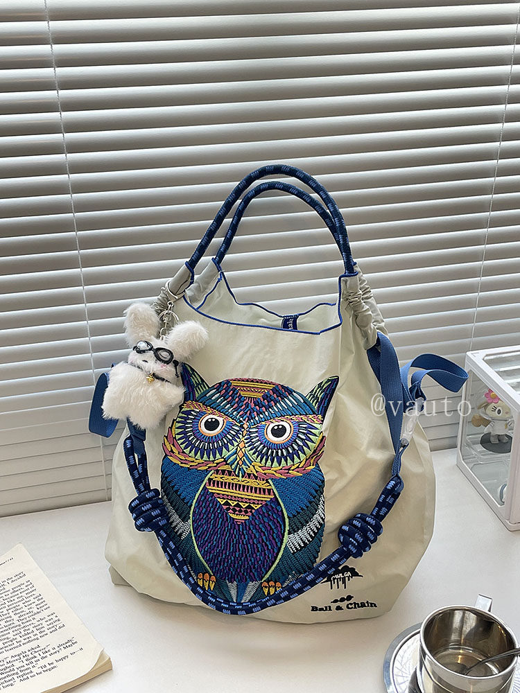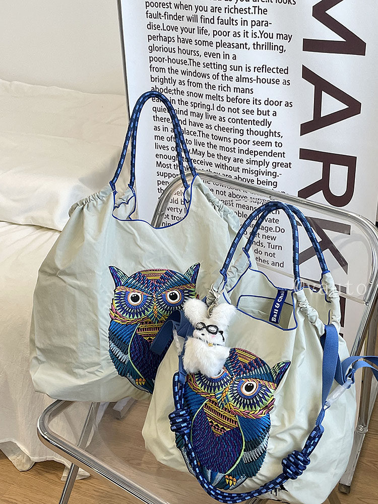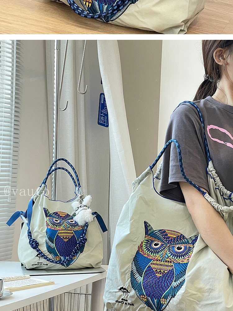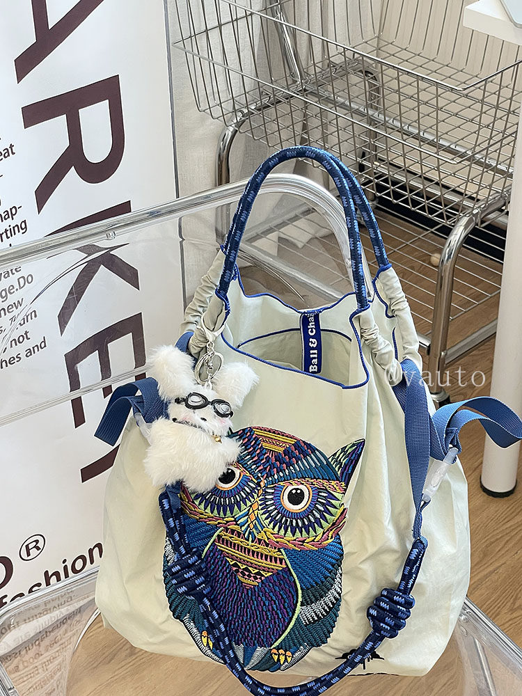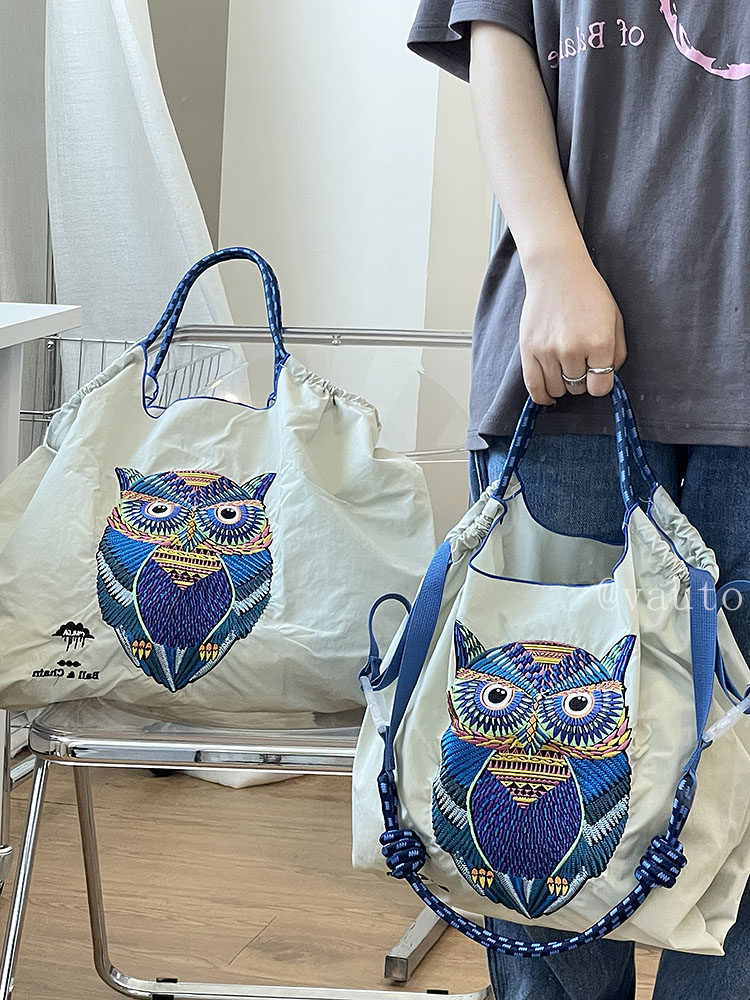 Японский нейлоновый шоппер, сумка на одно плечо, с вышивкой