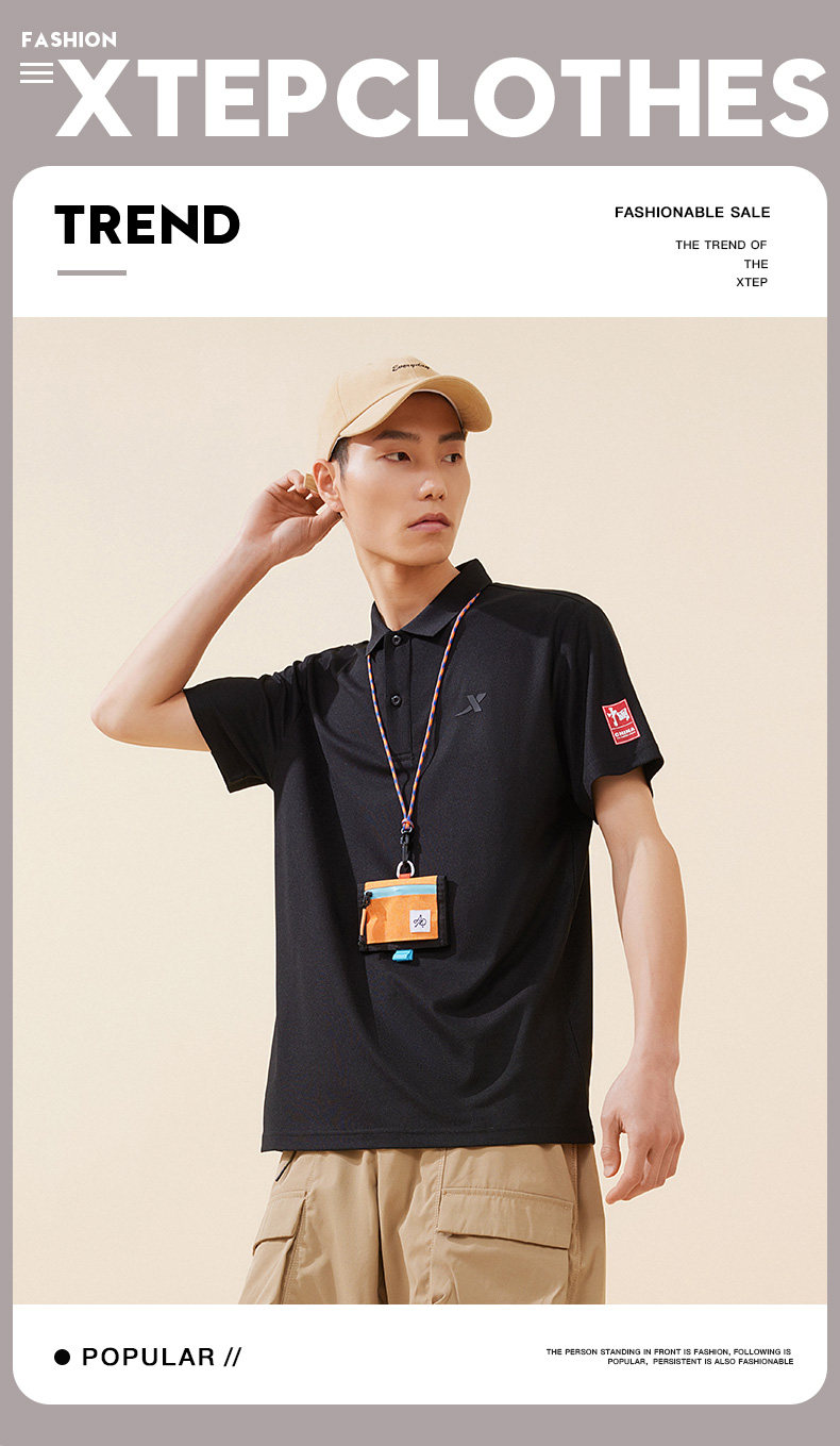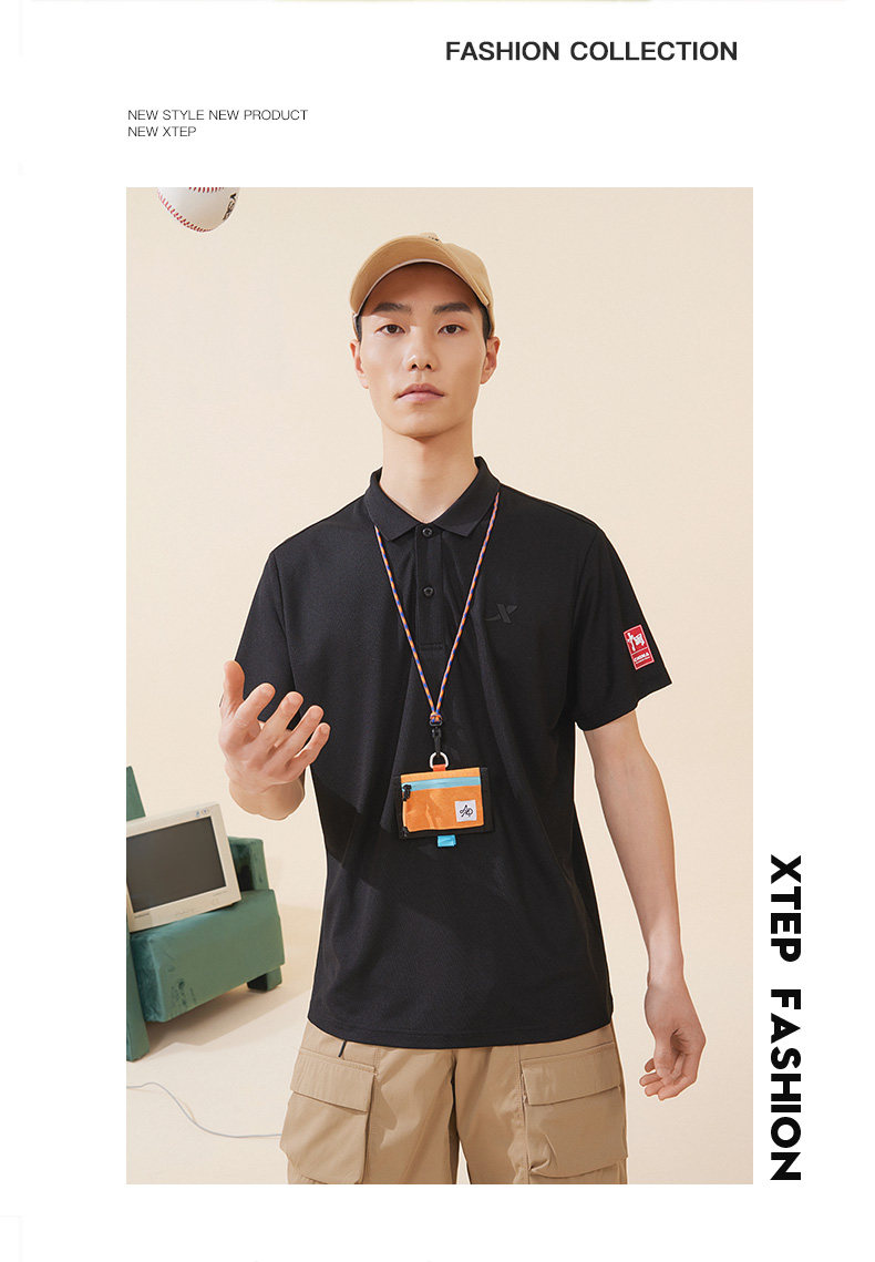 Xtep, летняя модная спортивная футболка polo для отдыха, короткий рукав, свободный крой