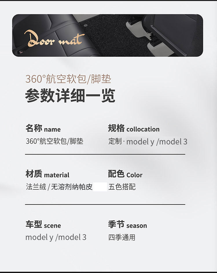 24 Tesla Model Ymodel3 Maodia Model 360 Air Pack Full Siege Full Pad