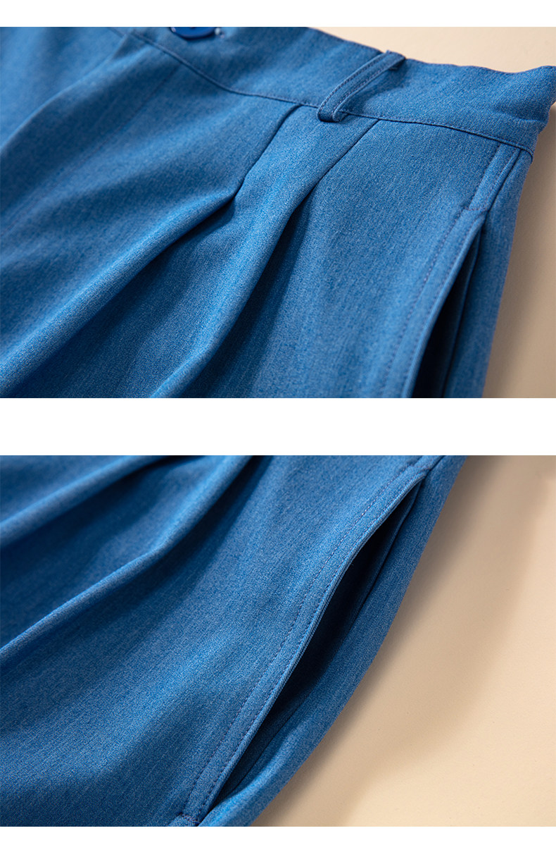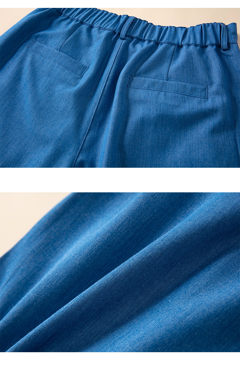 Джинсовая юбка, шорты, штаны для отдыха, шелковый синий костюм, свободный прямой крой