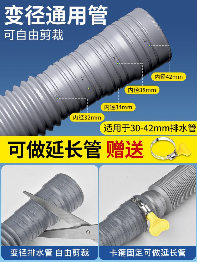 Стиральная дренажная труба удлинительная труба Универсальная выпускная труба Универсальная труба Удлиноватая автоматическая утечка на полу в роликах