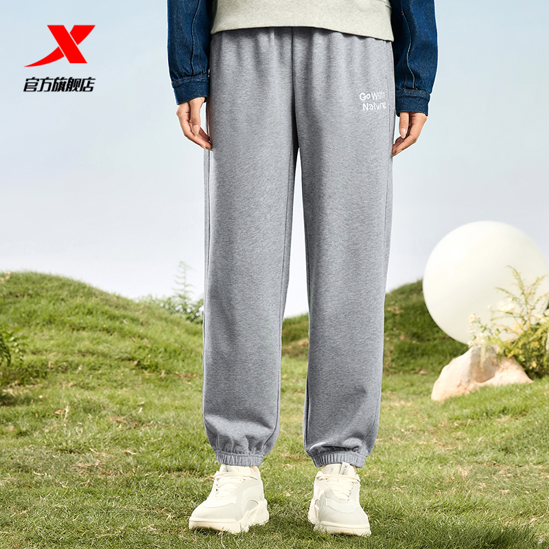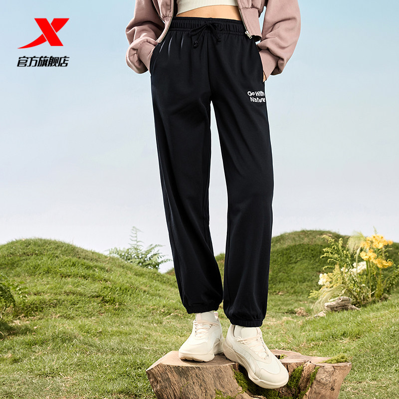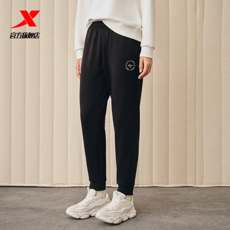 Xtep, осенние трикотажные черные штаны для отдыха, оверсайз, по фигуре