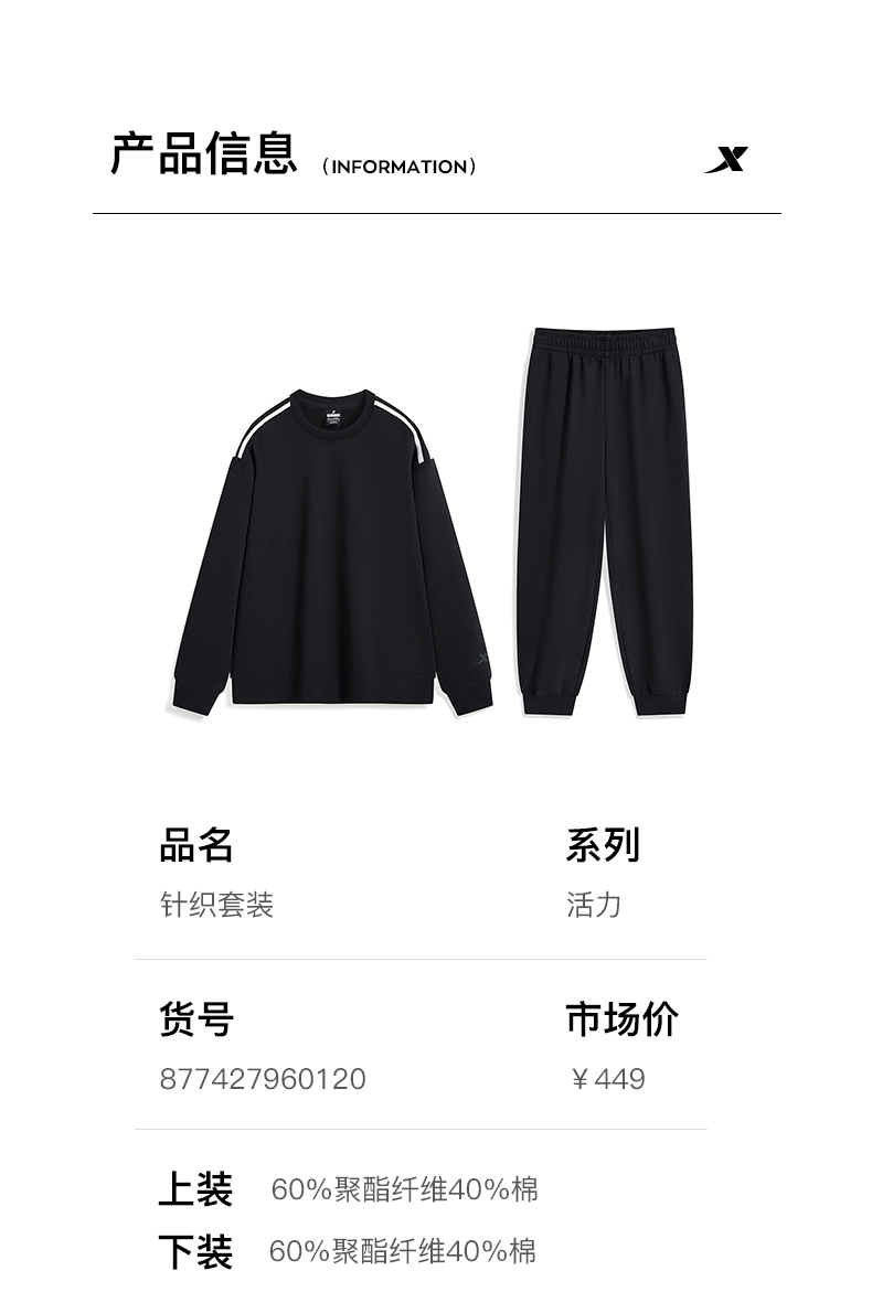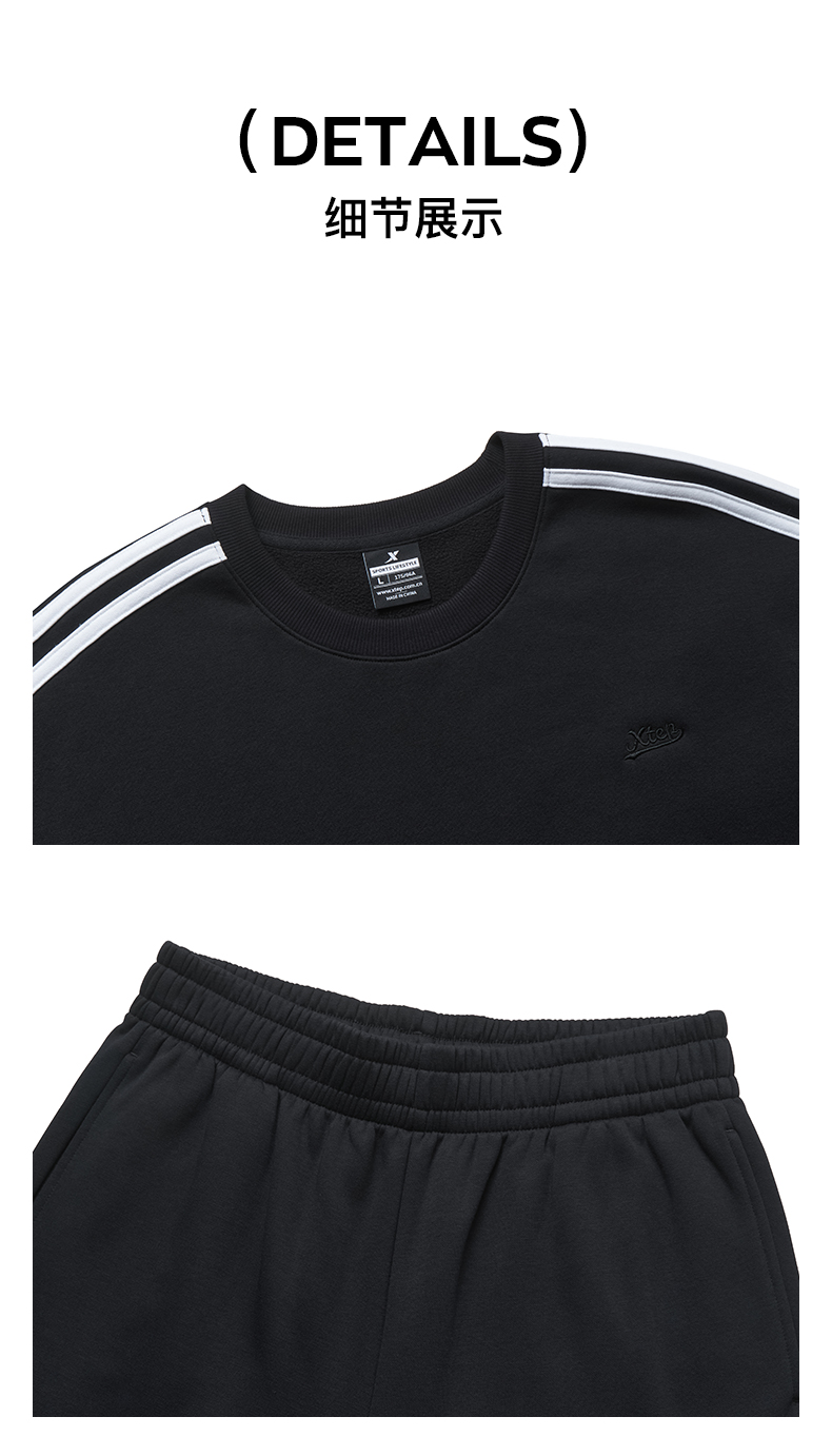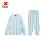Xtep, демисезонный утепленный спортивный костюм подходит для мужчин и женщин, трикотажные штаны, толстовка, круглый воротник