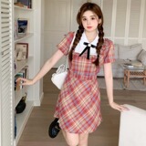 Летнее платье с бантиком, мини-юбка, большой размер, в корейском стиле, высокая талия