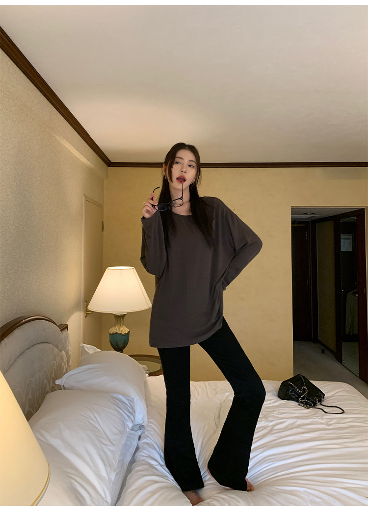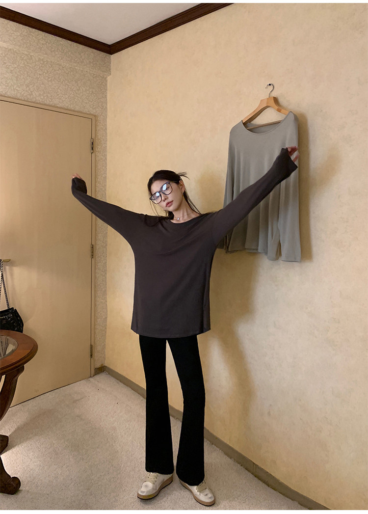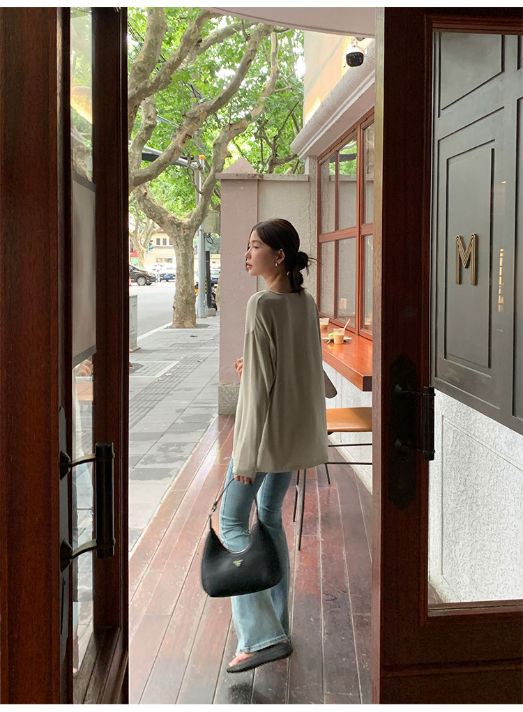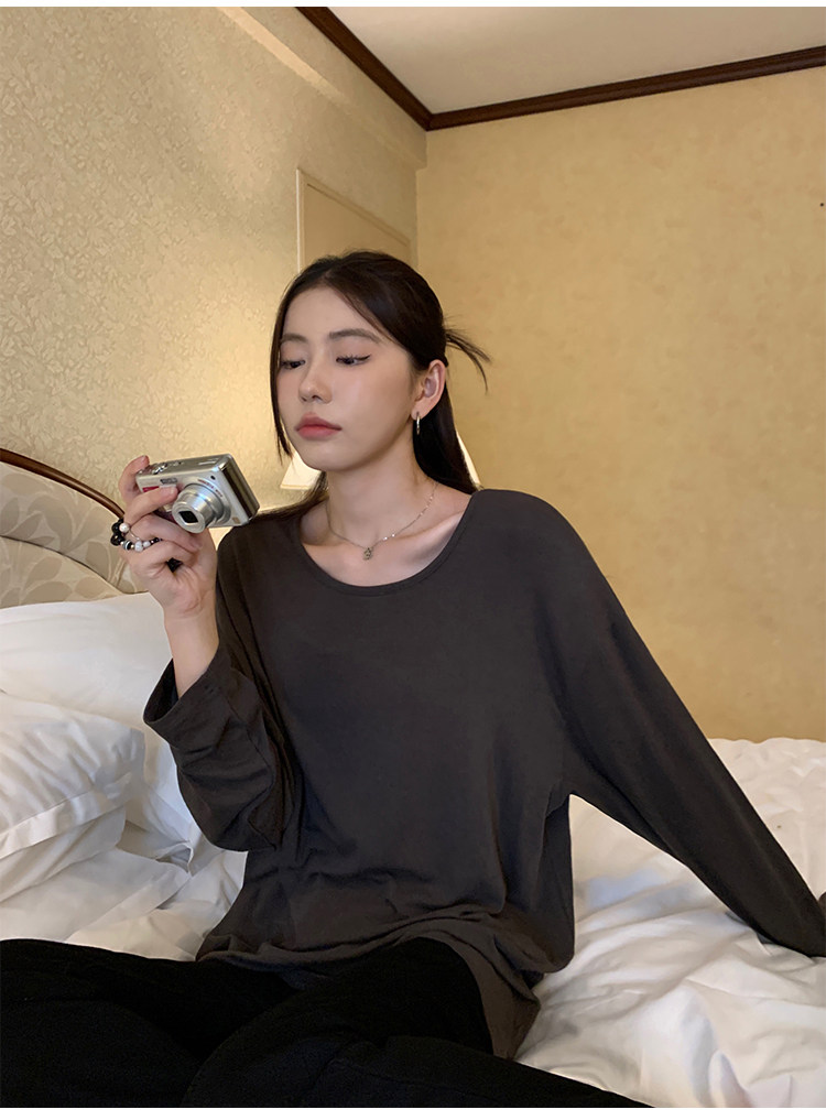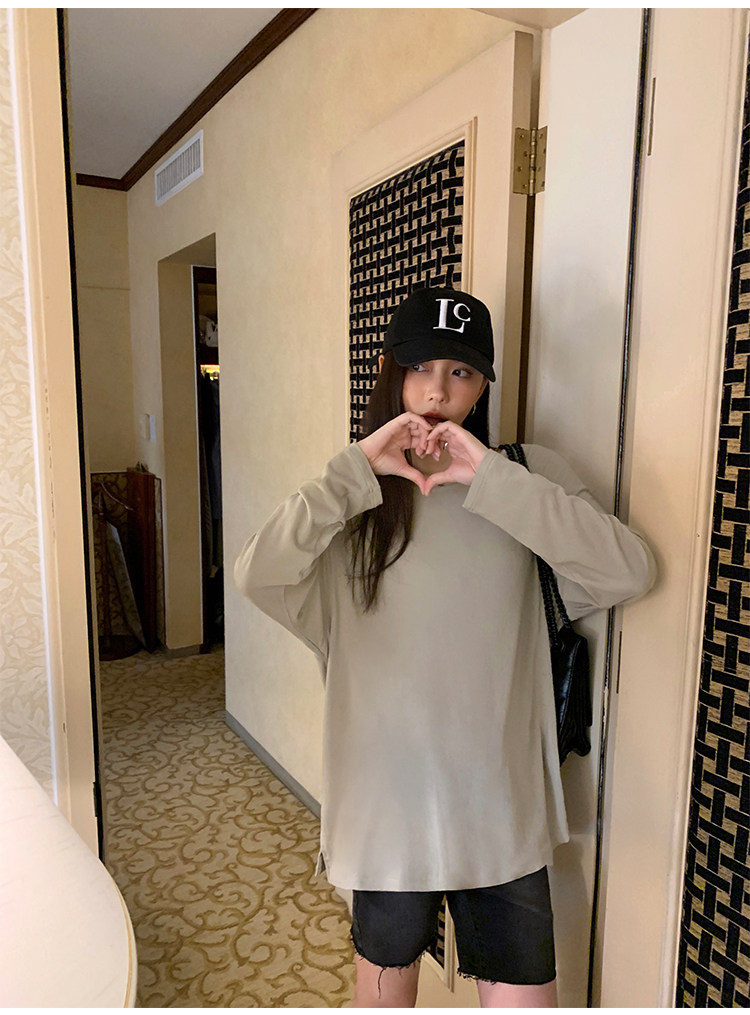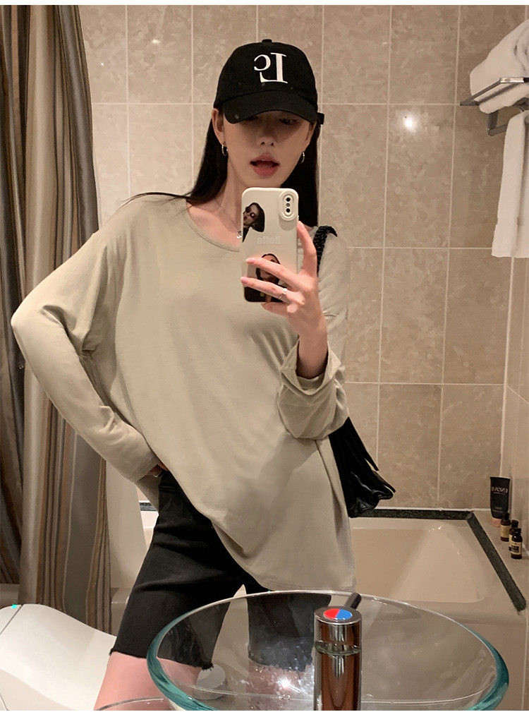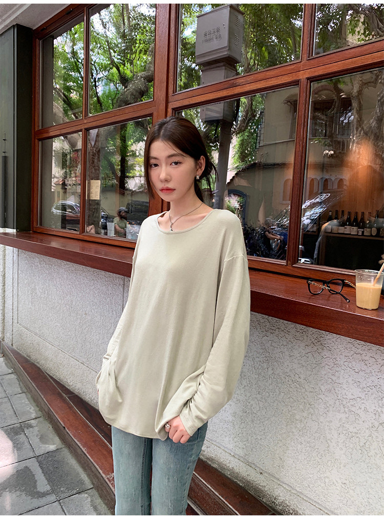 Осенний лонгслив с круглым воротником, трикотажный свитер для отдыха, свободный крой