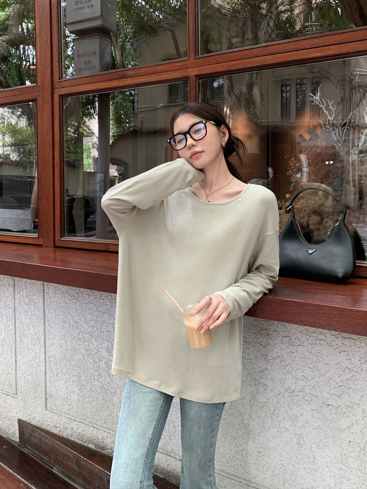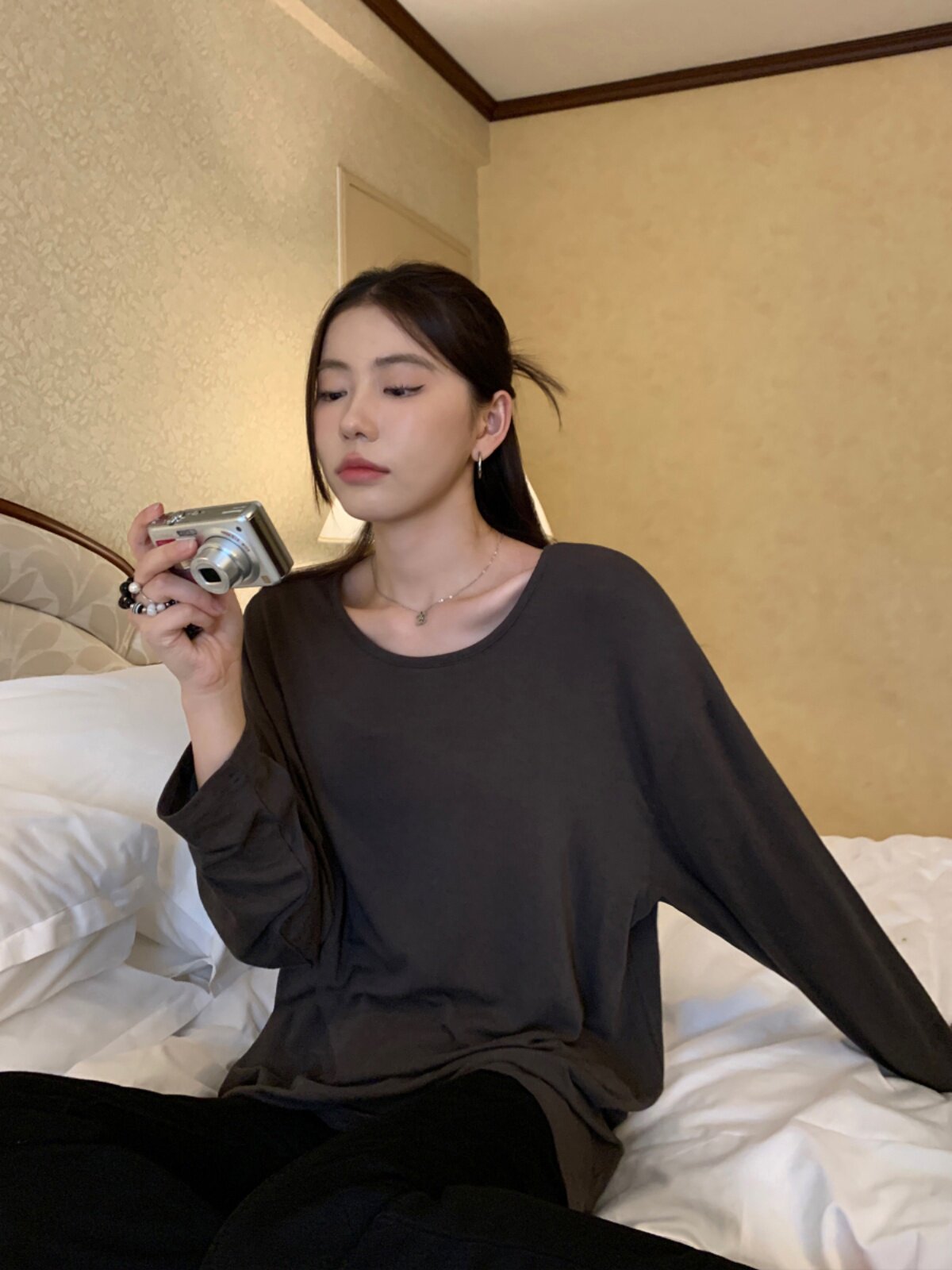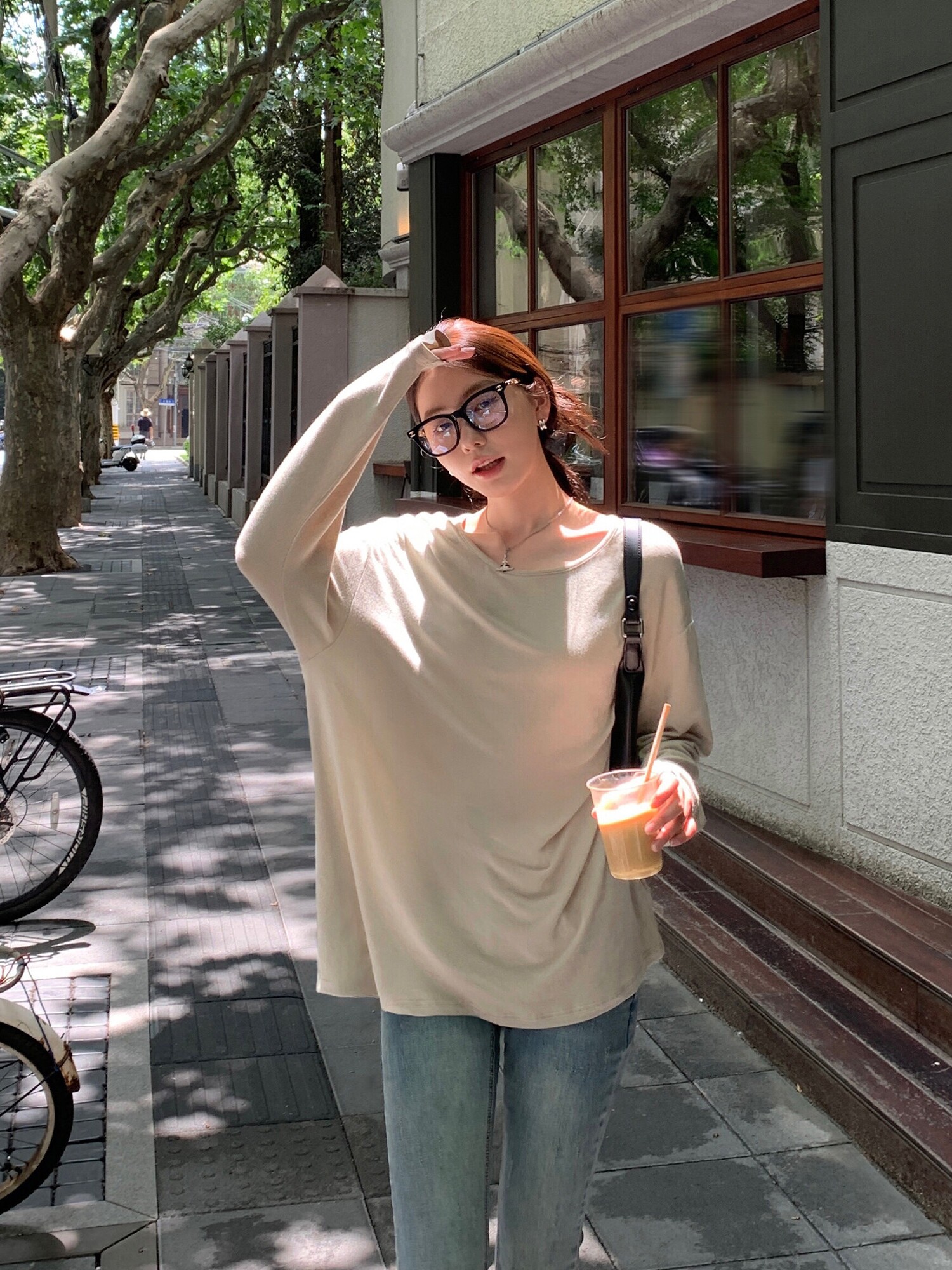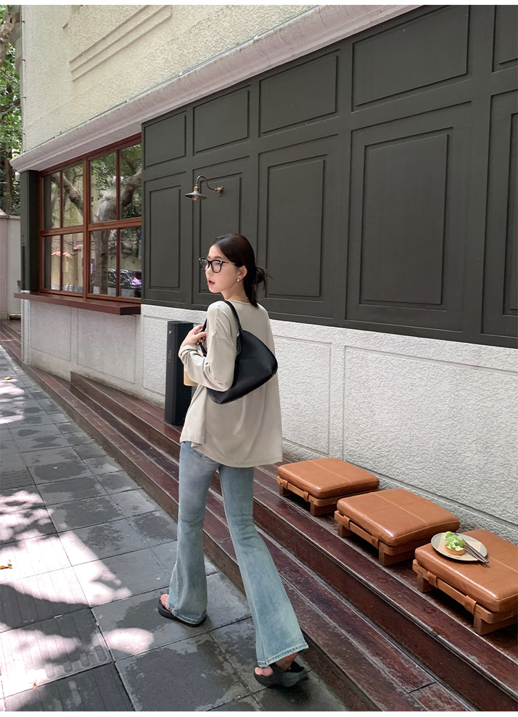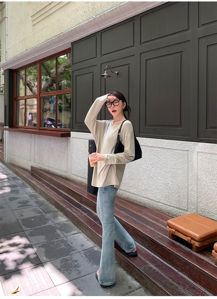 Осенний лонгслив с круглым воротником, трикотажный свитер для отдыха, свободный крой