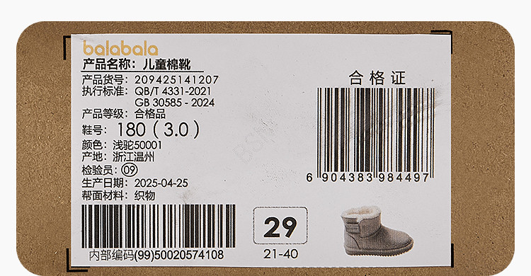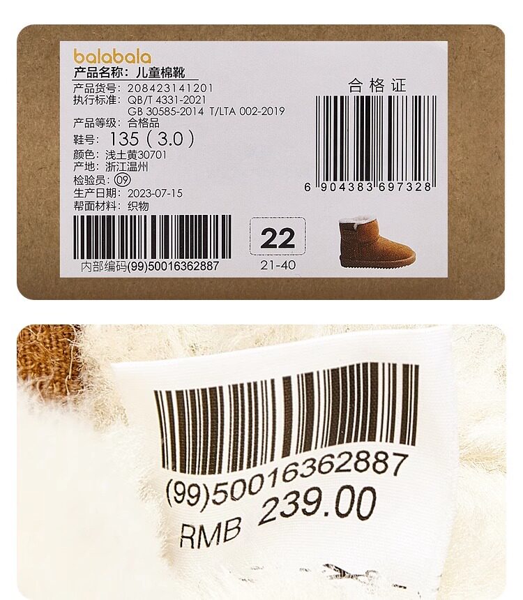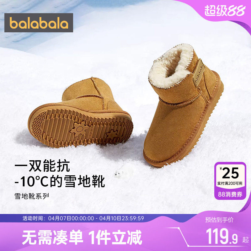 巴拉巴拉 Сапоги для мальчиков, детские зимние ботинки, детская флисовая обувь, подходит для подростков