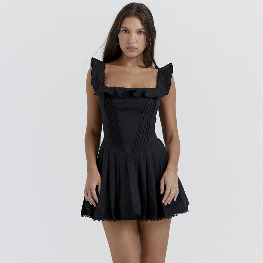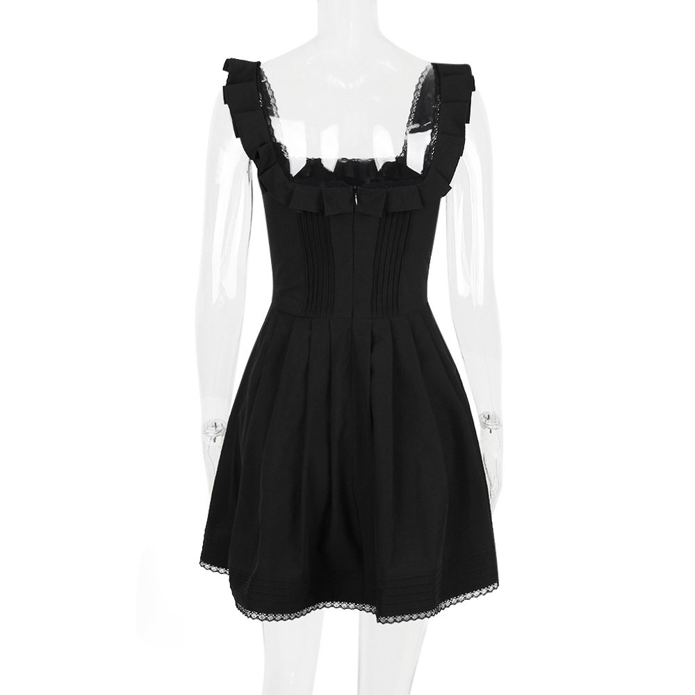 Корсет, короткая юбка в складку, мини-юбка, французский стиль, квадратный вырез, с рукавом