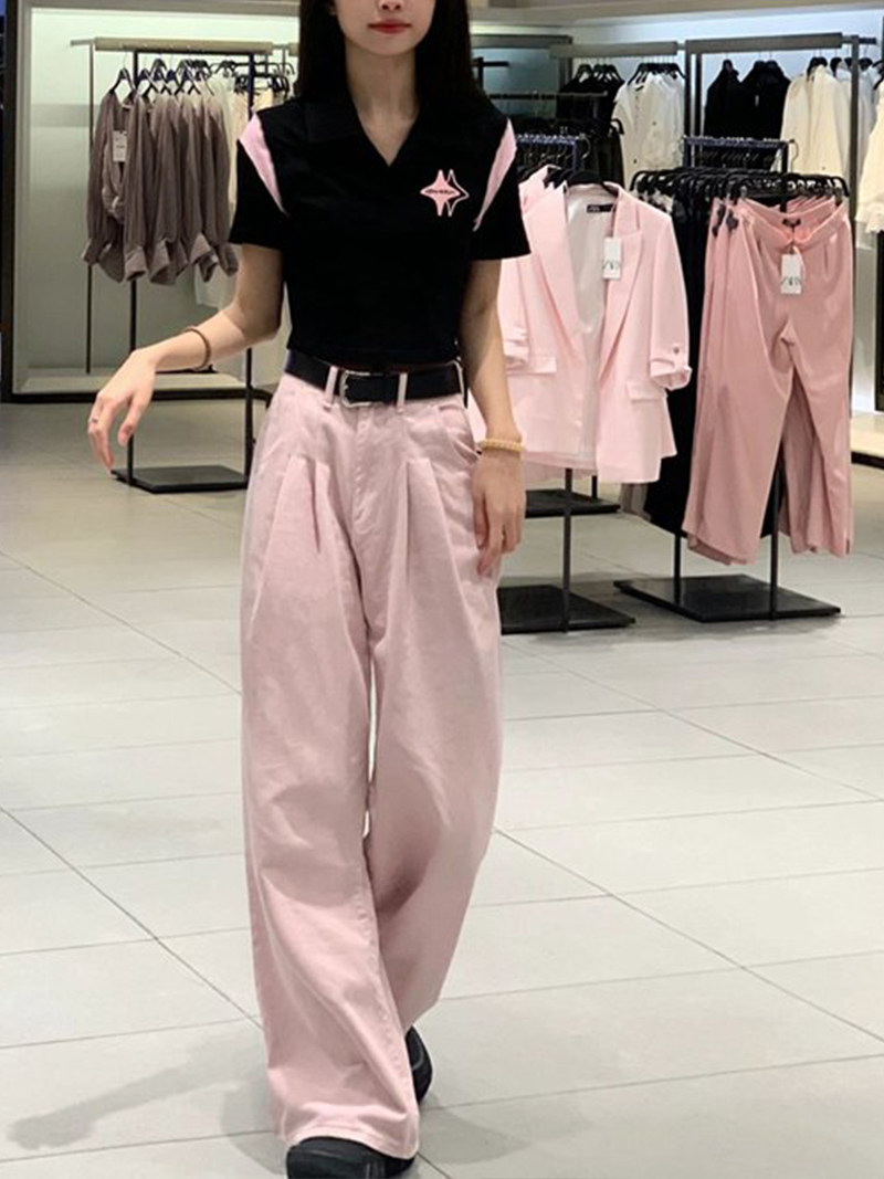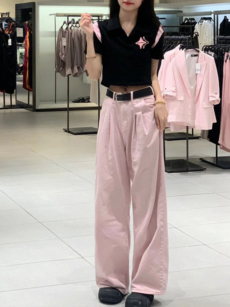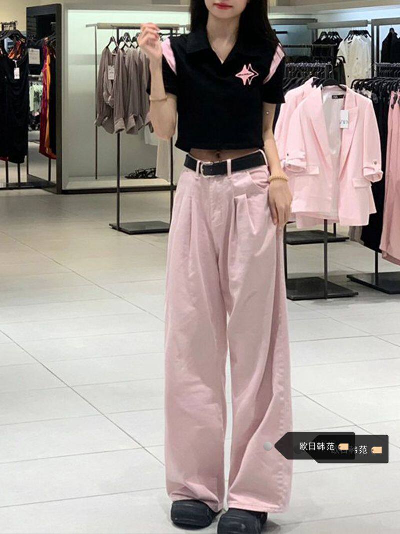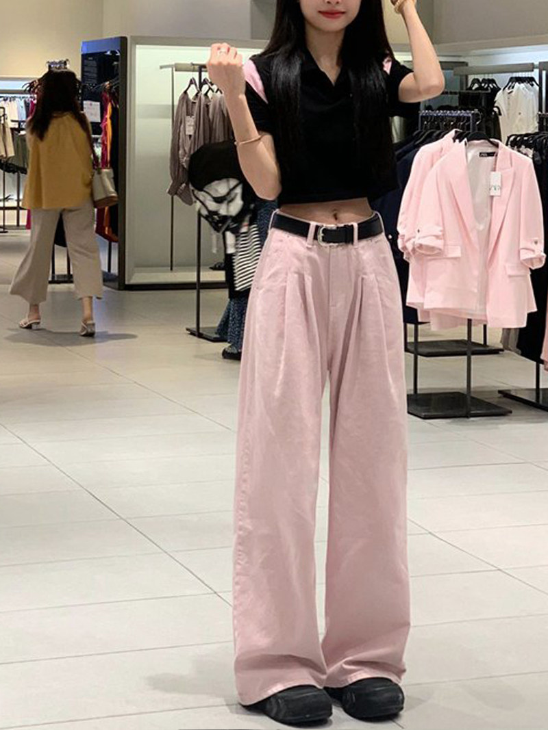 Розовые осенние джинсы, штаны, леггинсы, большой размер, в американском стиле, высокая талия