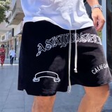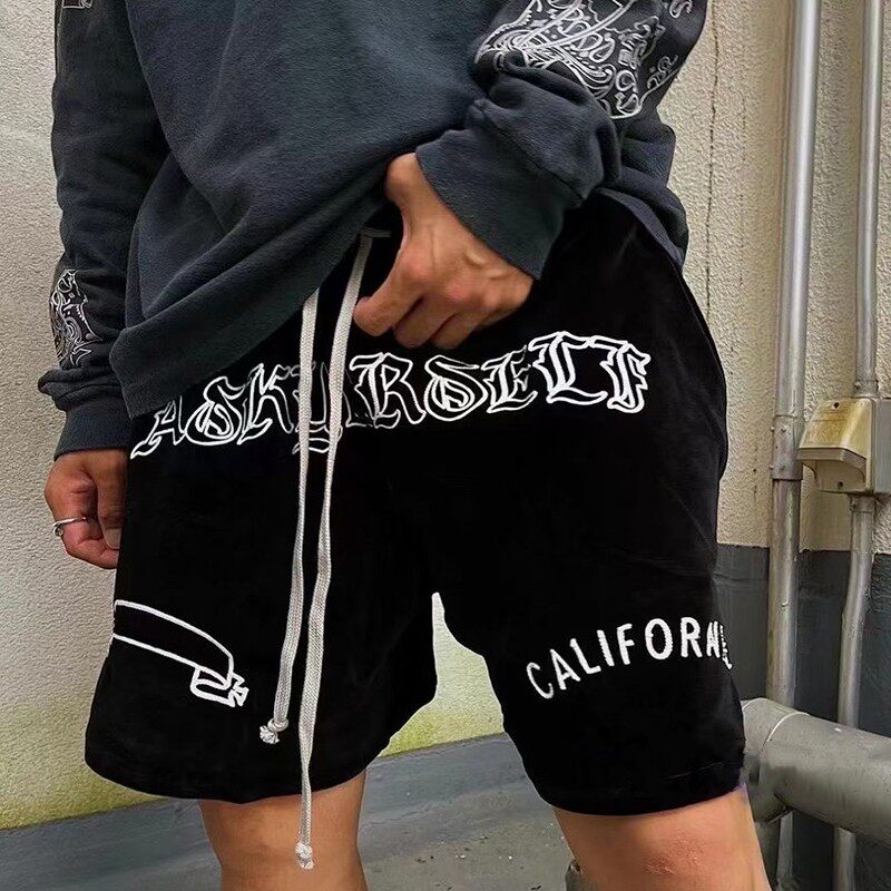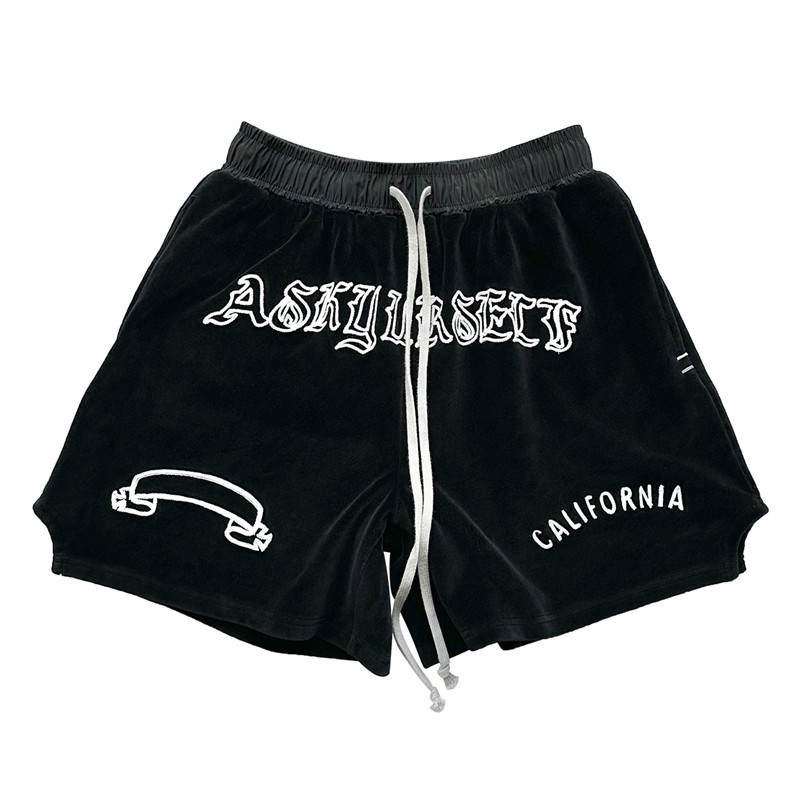 Askyurseell Ask 23ss Black Slim Emelcodery Letter Boxing Flat мужчина и женщины повседневные брюки шорты