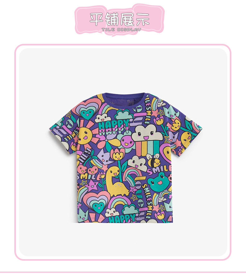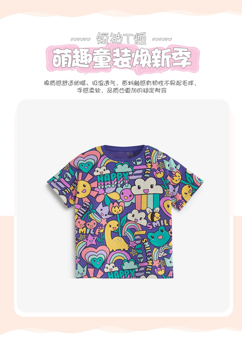 Детская летняя мультяшная хлопковая футболка с коротким рукавом, европейский стиль, принт