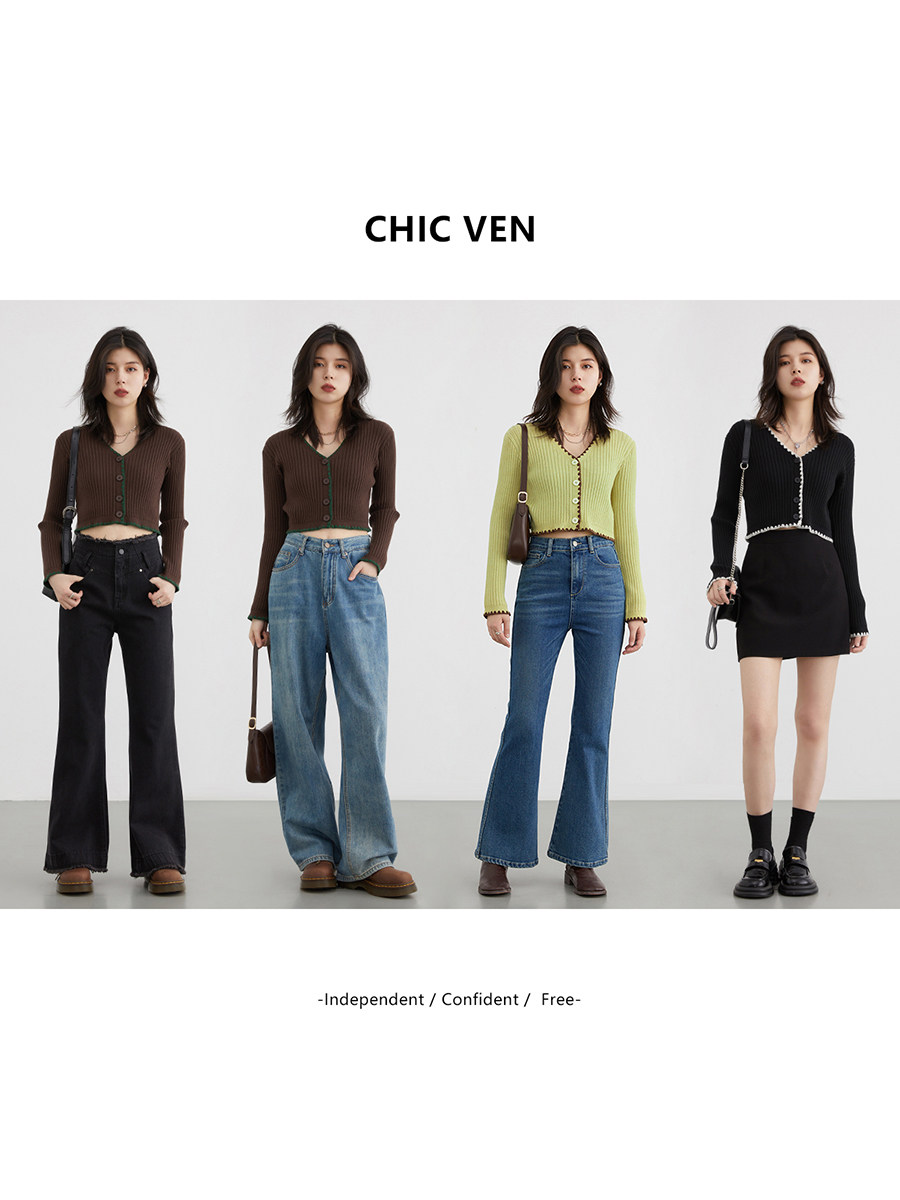 Осенний трикотажный свитер, короткий кардиган, V-образный вырез, облегающий крой