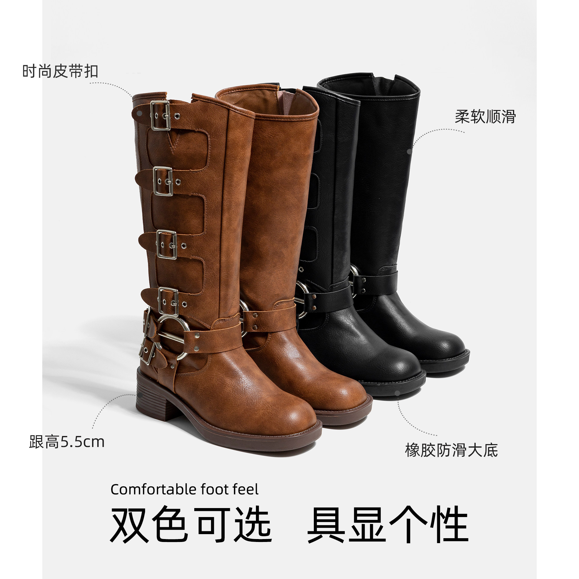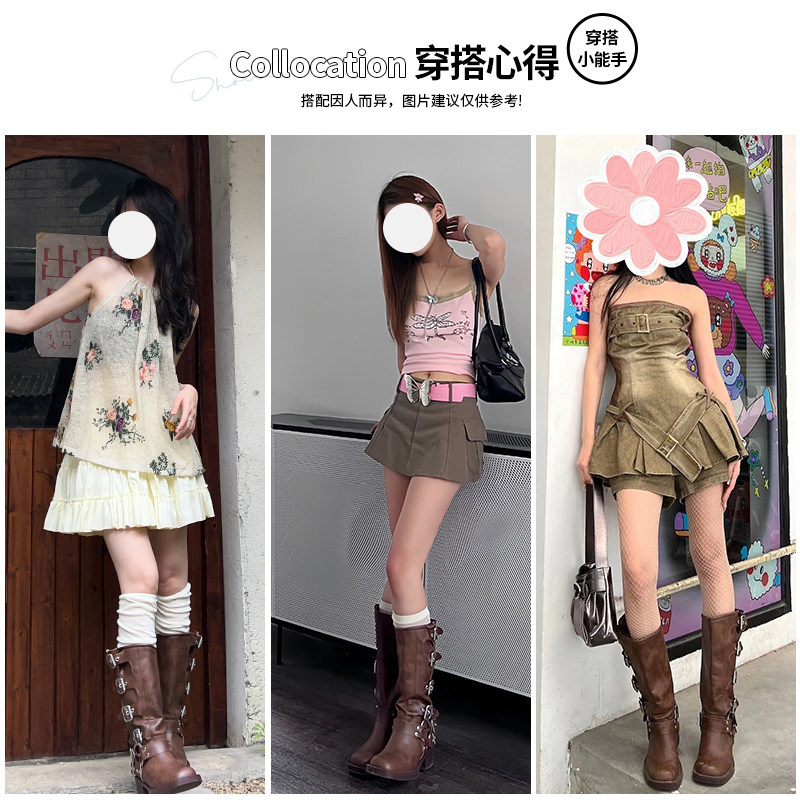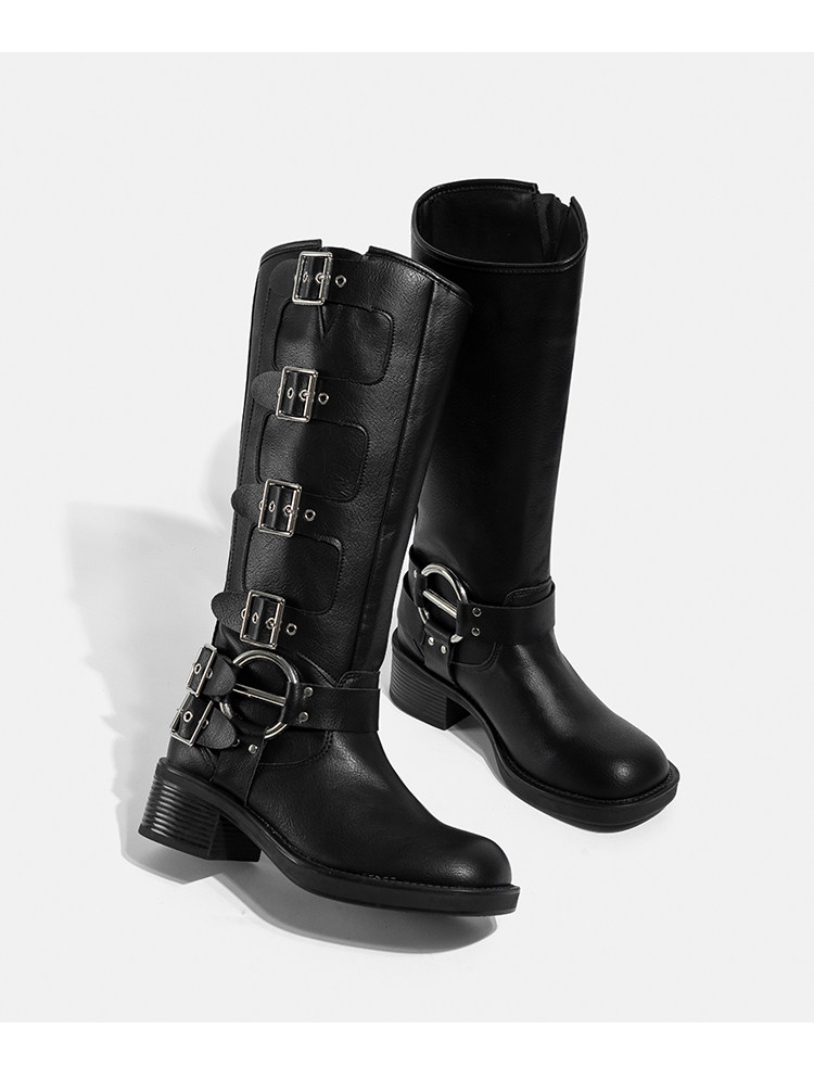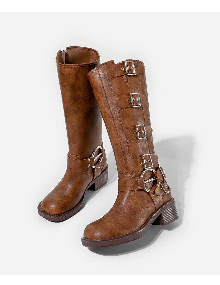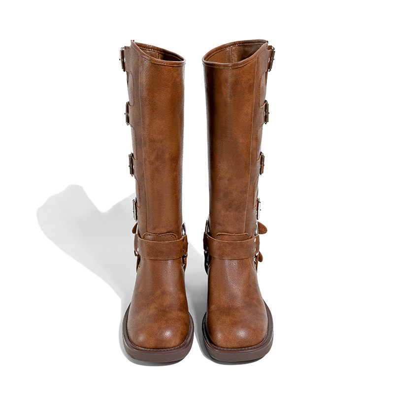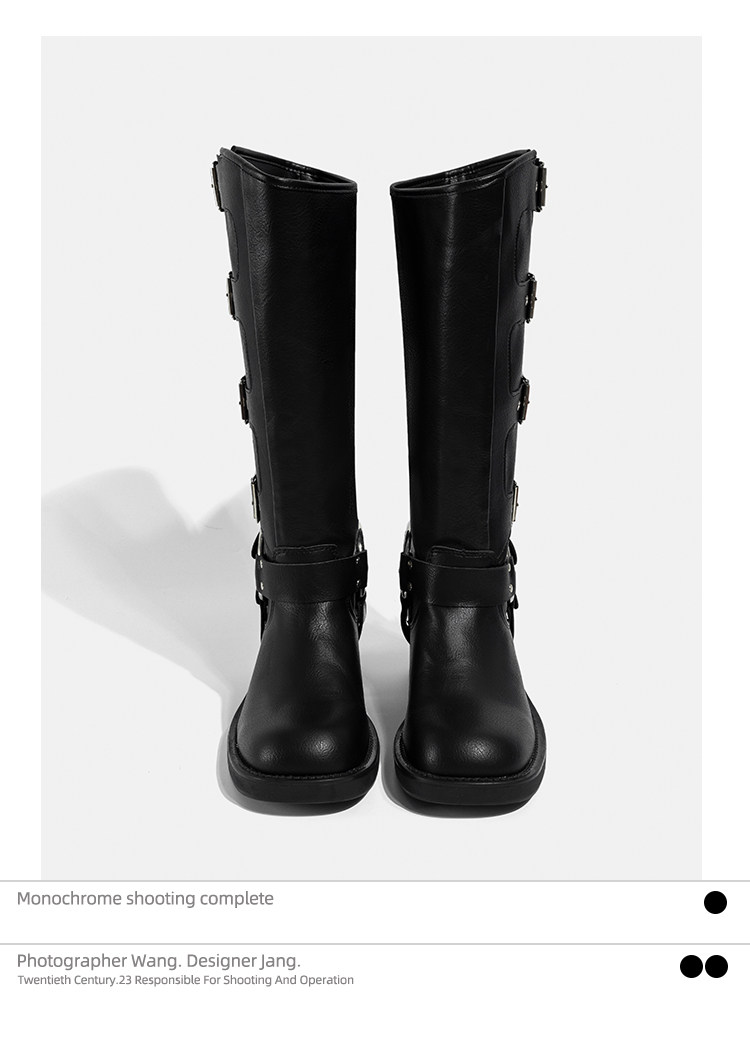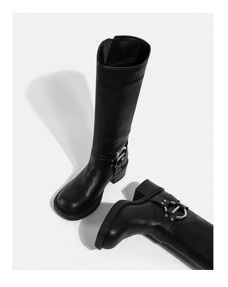 Высокие сапоги, ремень, джинсовая пряжка, из натуральной кожи