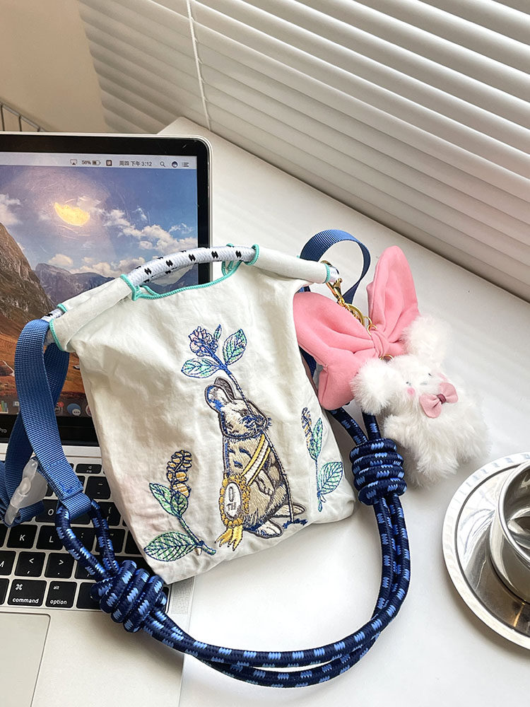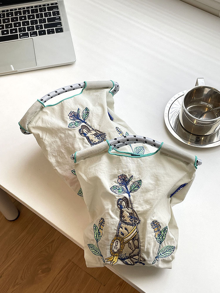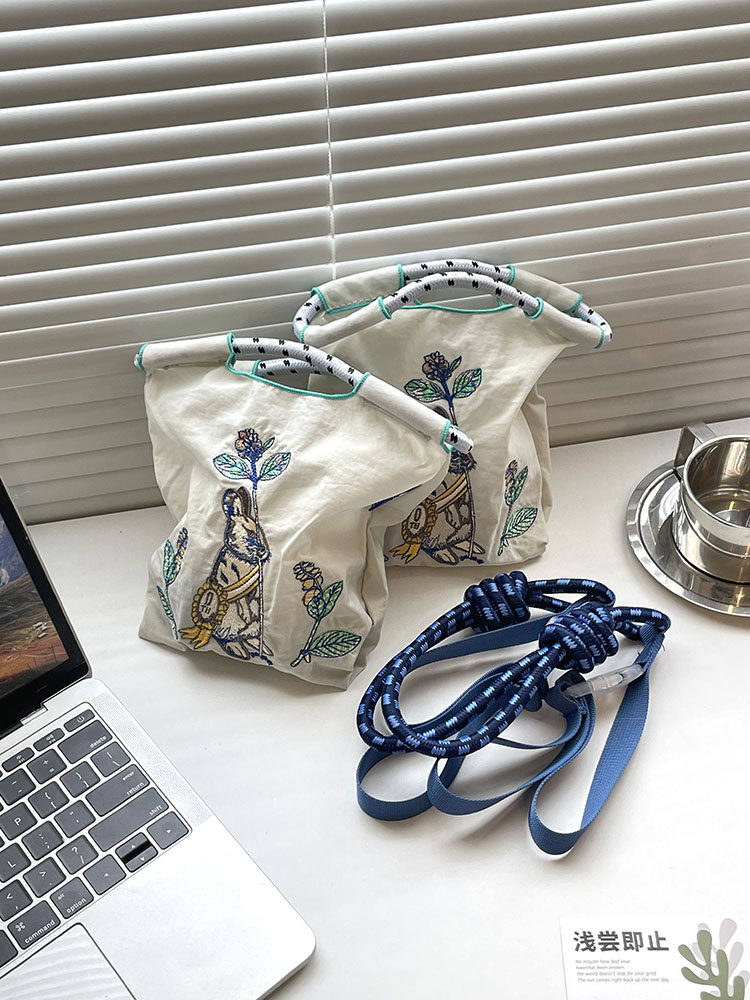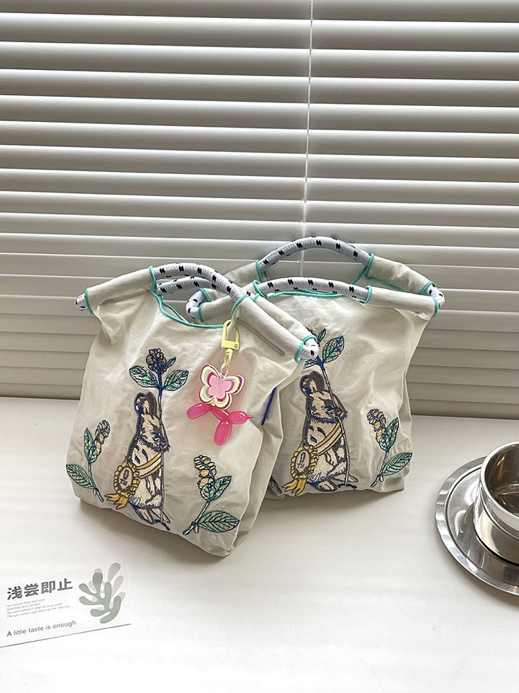 Япония приобрела ту же самую сумку для покупок с мячом, вышитая грудь Глава кролика Нейлоновая защита окружающей среды Сумка сумки
