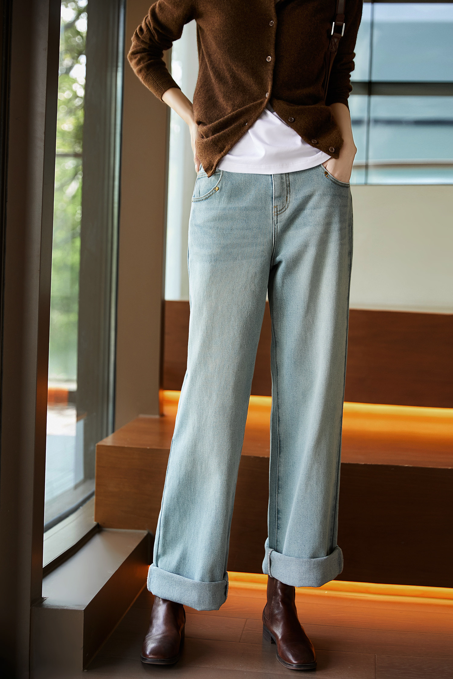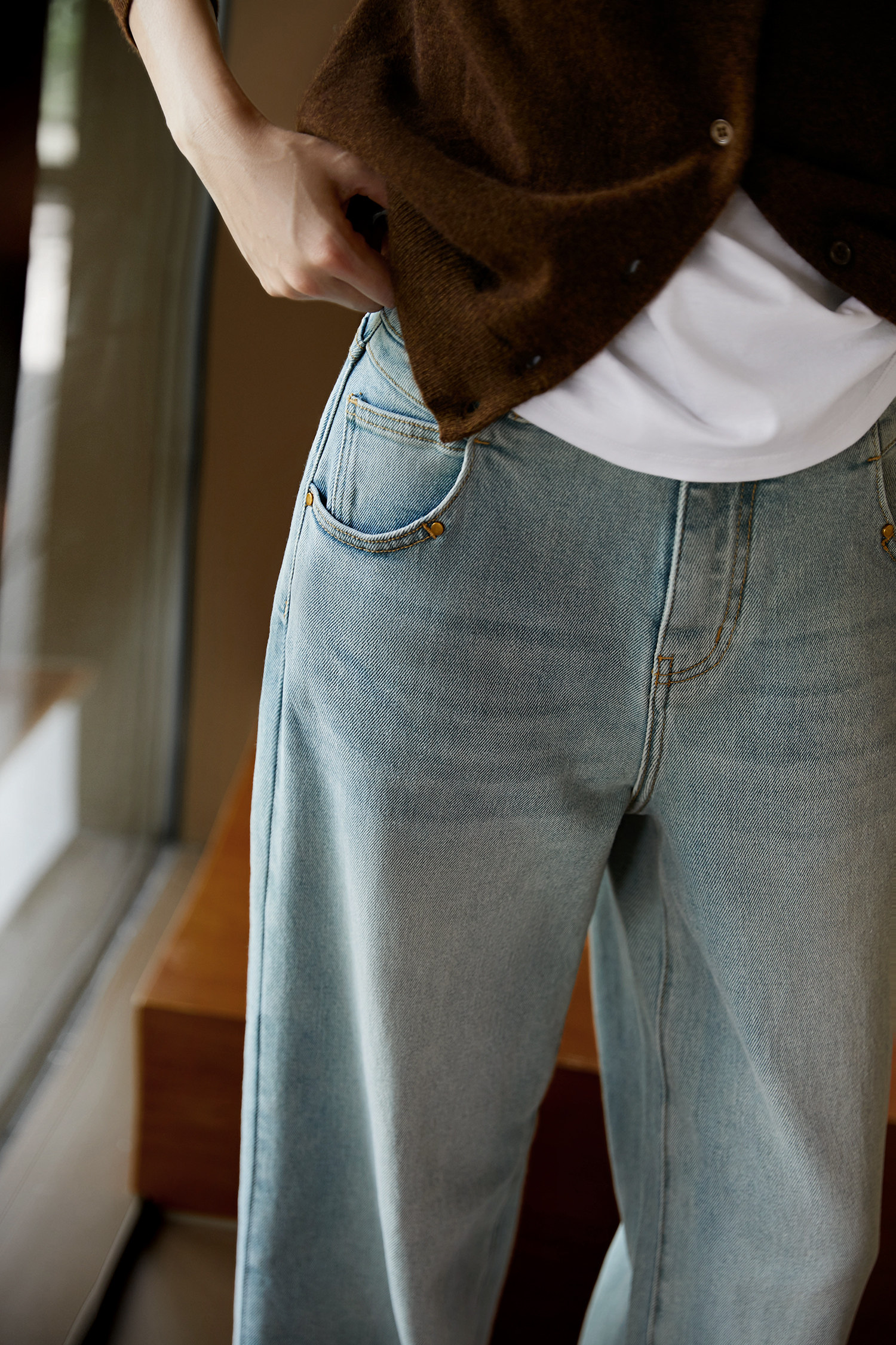 Морская соль, ретро джинсовые штаны, свободный прямой крой