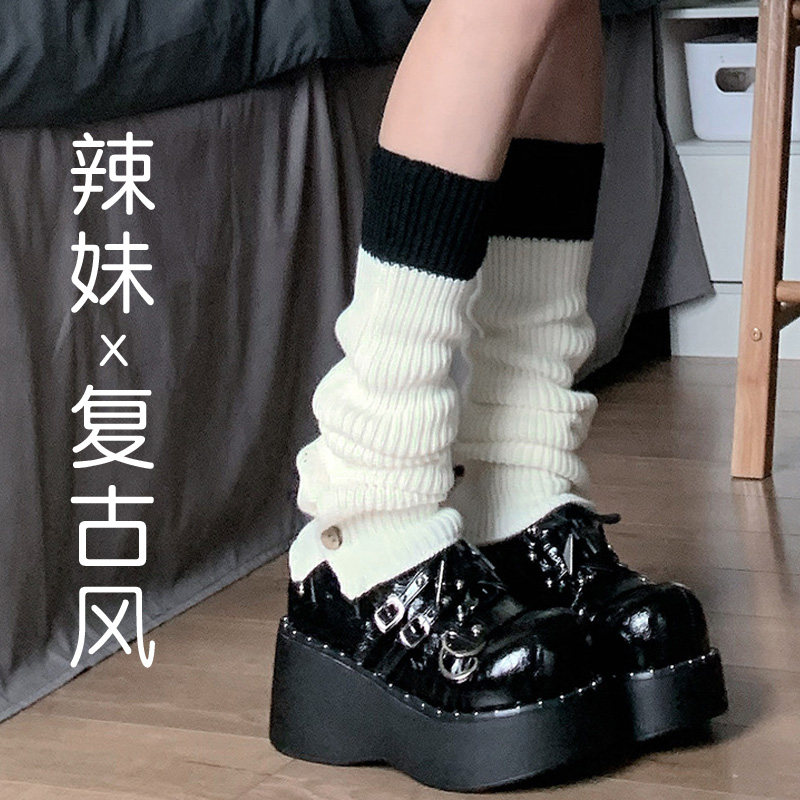Черные осенние гетры, шерстяной комплект, трикотажные японские милые носки для школьников, подходит для подростков