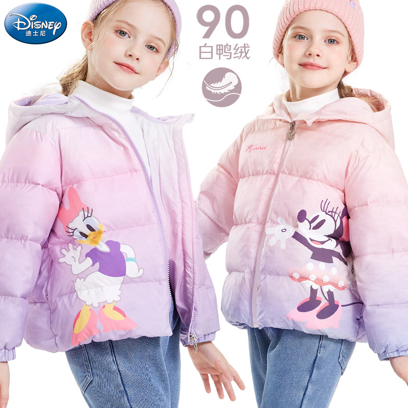 Дисней, детский бархатный пуховик, демисезонная зимняя куртка с капюшоном, белая одежда, утиный пух, увеличенная толщина