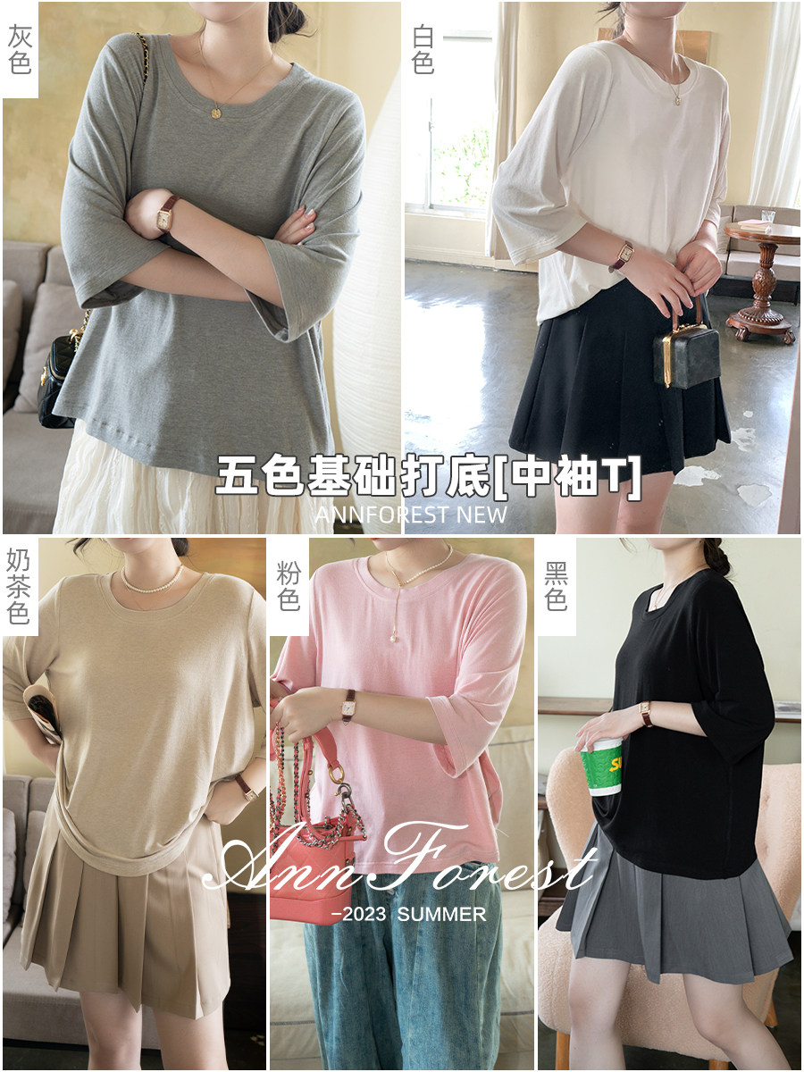 [Желевое дно T] Энни Форест Хлопта Хлопта Leisure Basic Multi -Color Base Mid -sleeve T Skin плохо