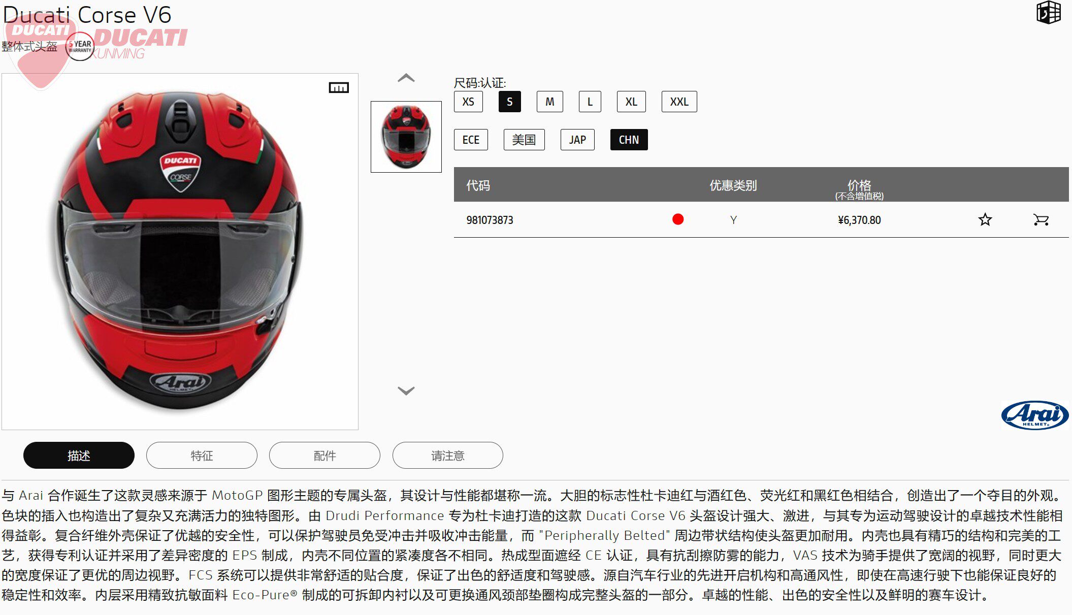 | Классификация цветов: | Ducati Arai Co -Brande Corse V6, Ducati Arai Co-Brense Corse V7, Ducati Arai выпустила совместный бренд CORSE V8, Совместный бренд Ducati Arai CORSE V8 F, Comfort v3 Cover Cover, Охладить 2 гарнитуры, Согреть 2 гарнитуры |