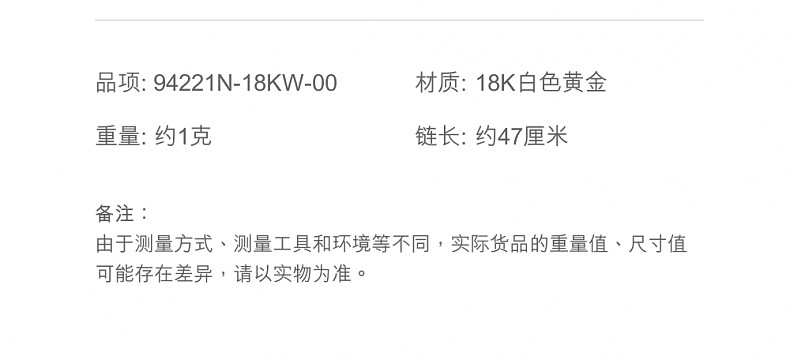 周生生 Белое золотое ожерелье, 18 карат