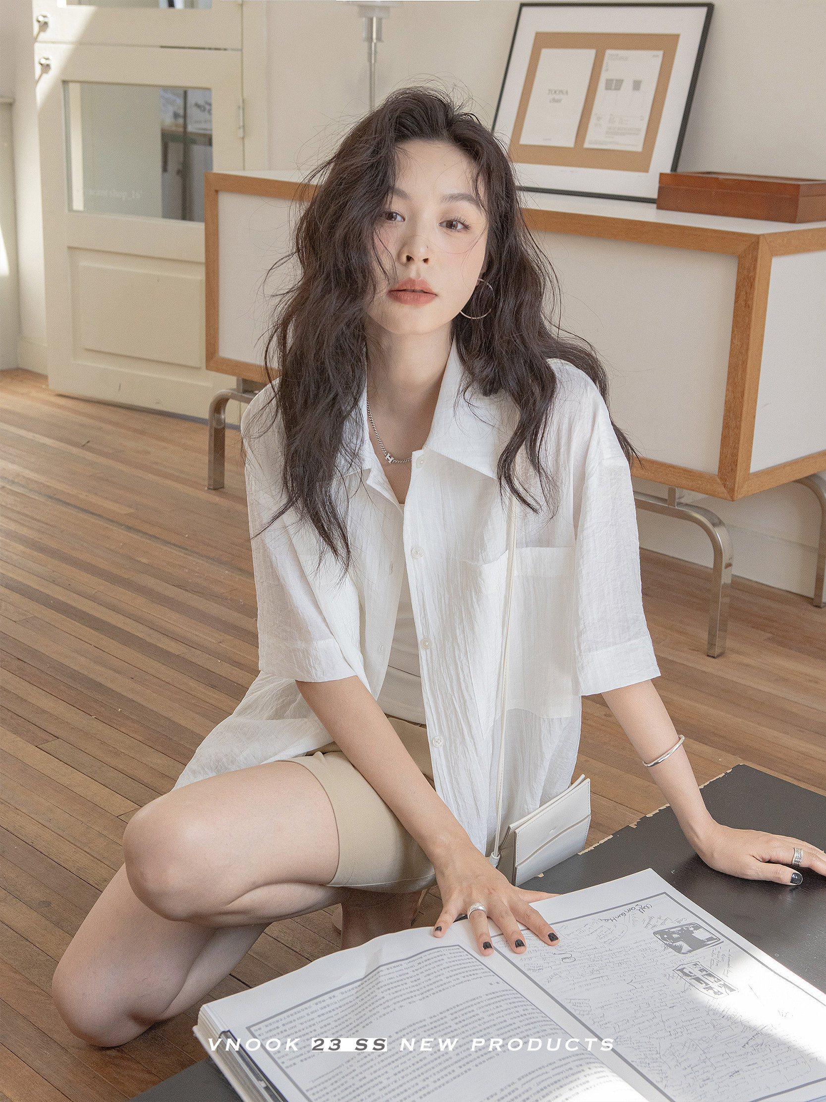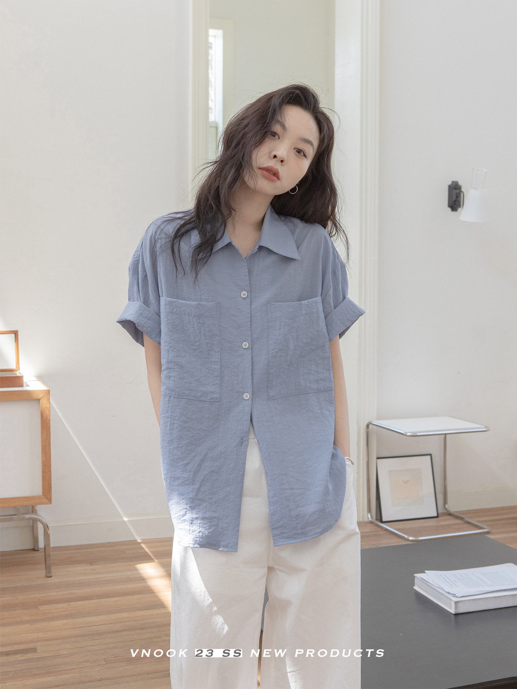 Vnook плиссированная рубашка женская сплошная цвето