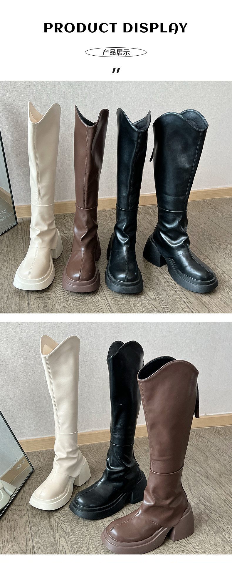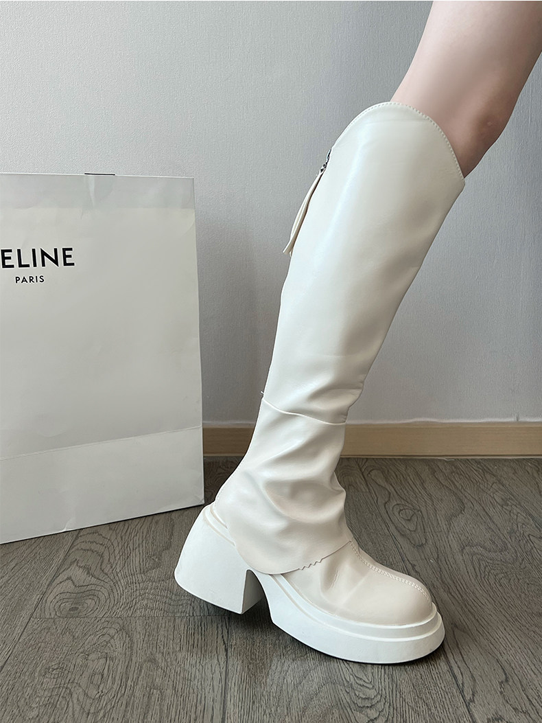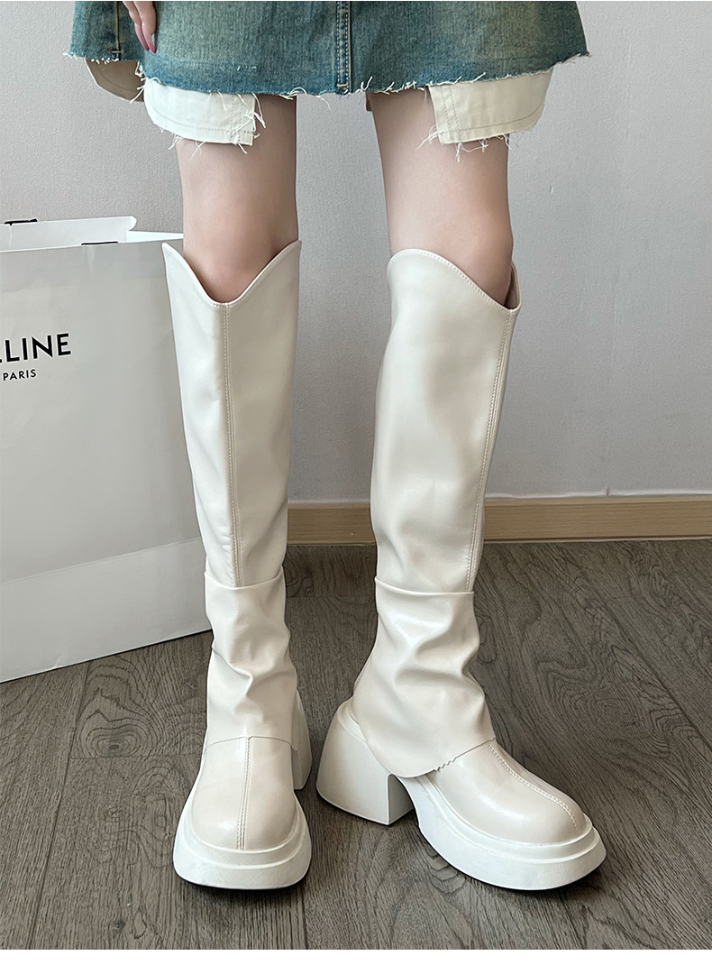 Высокие весенние тонкие черные высокие сапоги на платформе, подходит для подростков