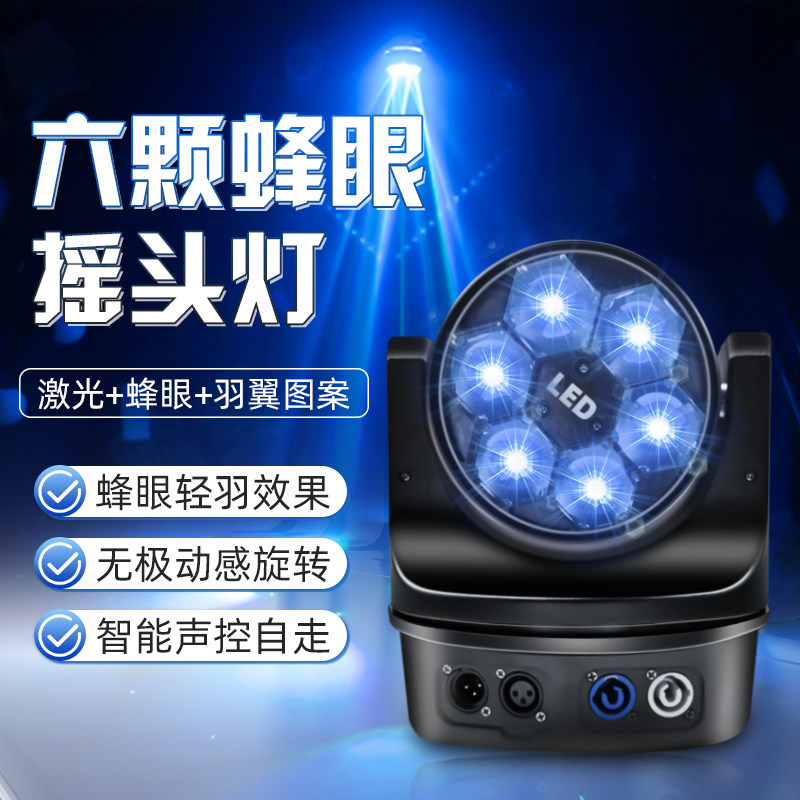 Шесть пчелино -эй -лампы лазерные сцены прыгающие огни KTV коробка якорь -бар бальный зал вращение дрожит фар красочный