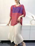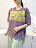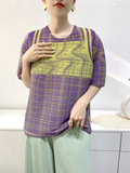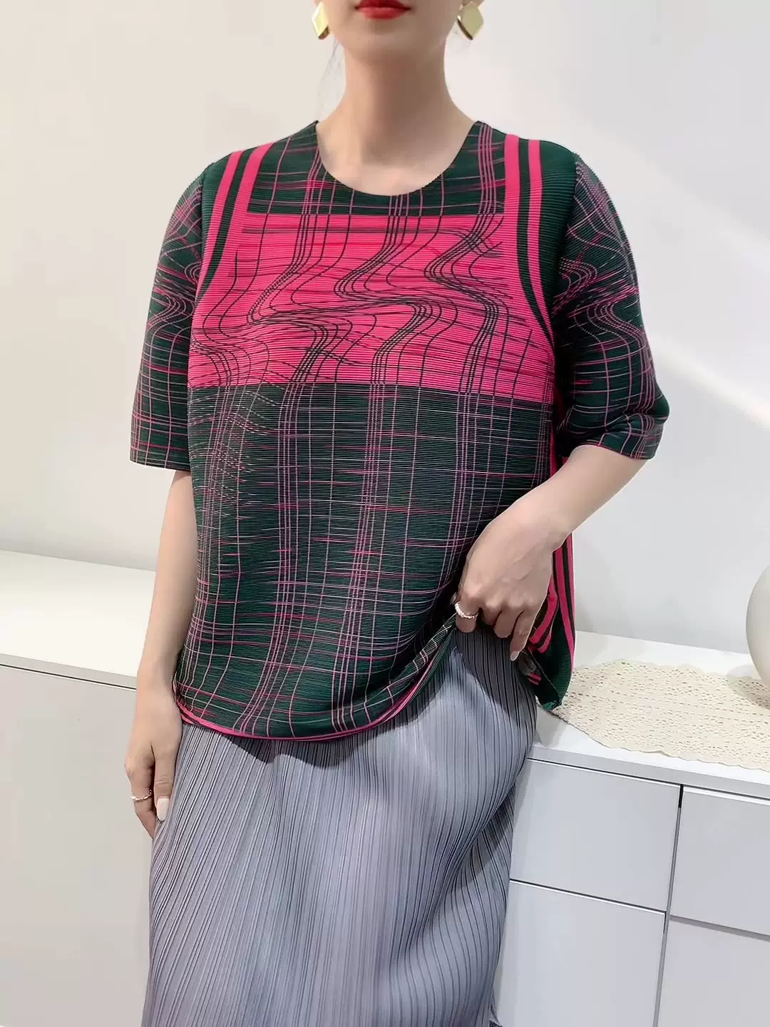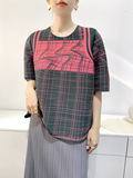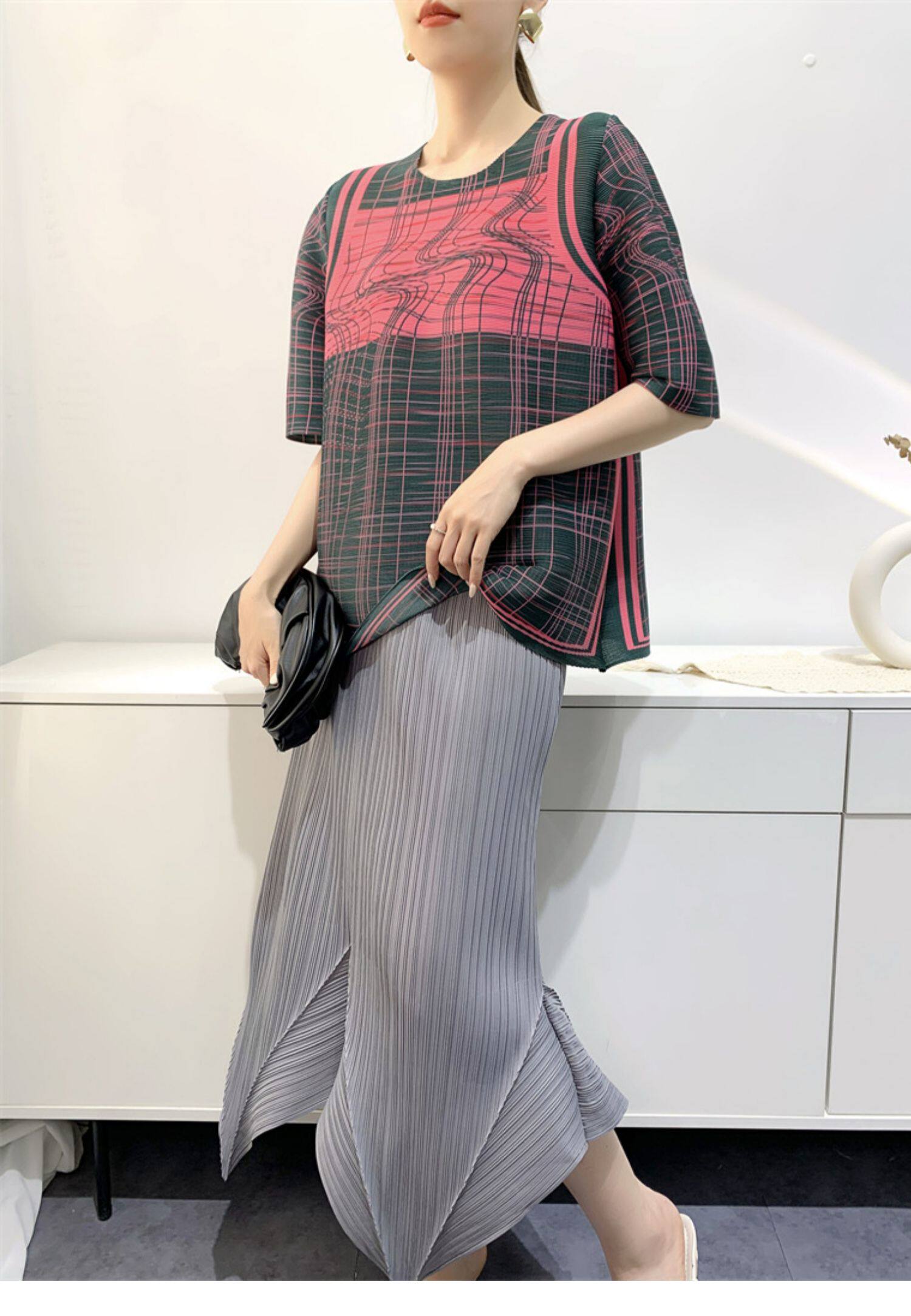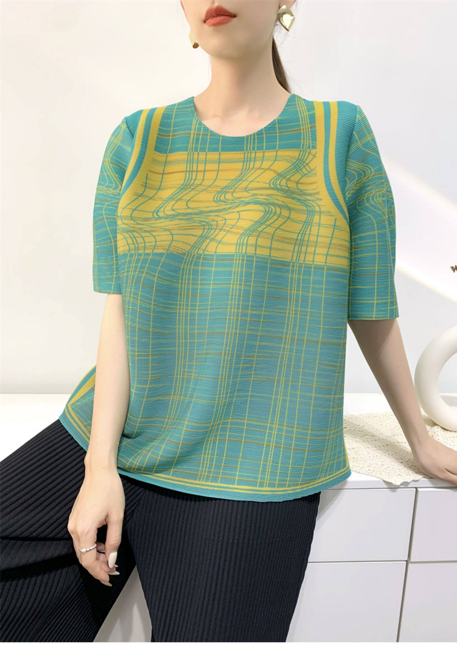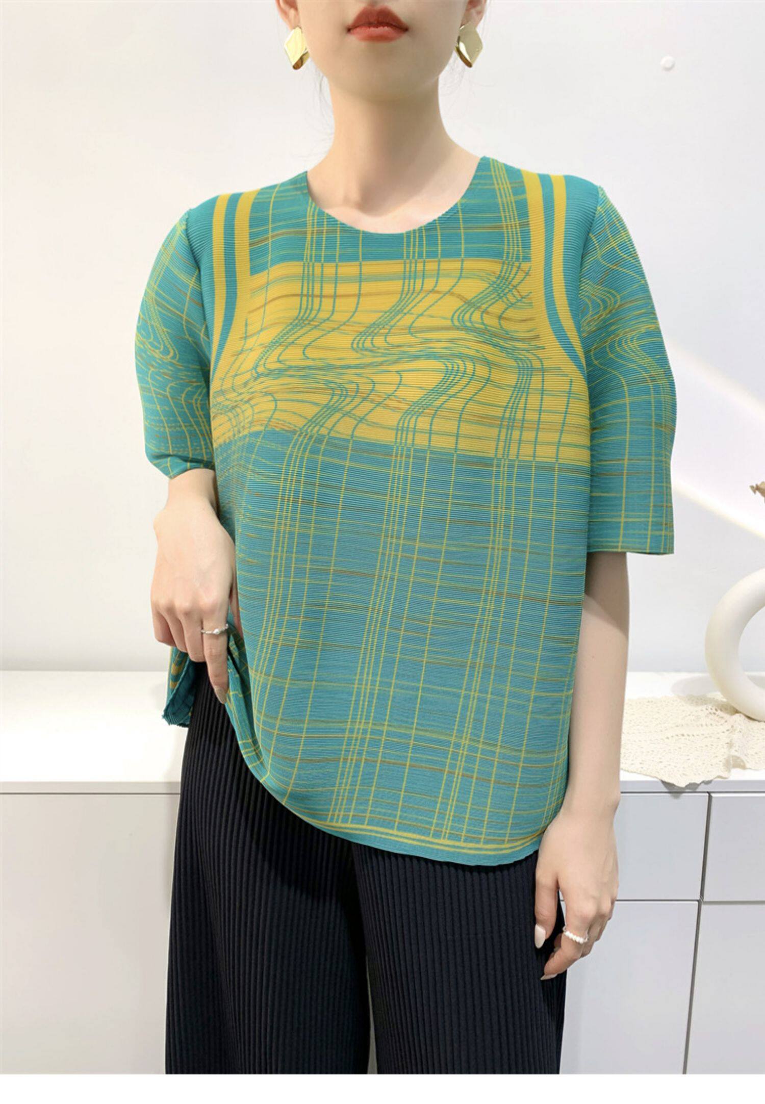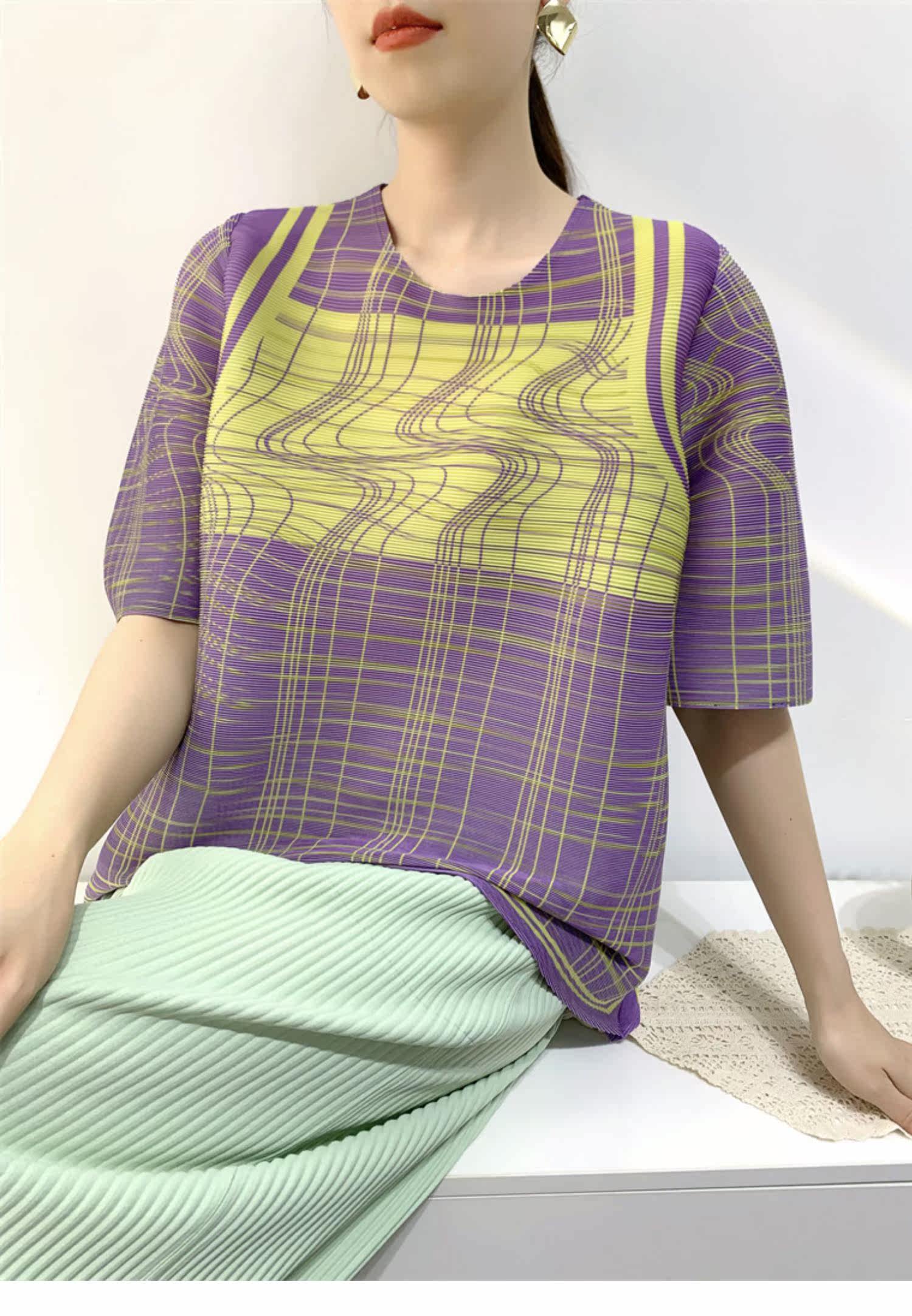 Лето 2024, женская плиссированная футболка с абстрактным принтом, повседневная свободная футболка с зубочисткой, женский топ для мам с коротким рукавом