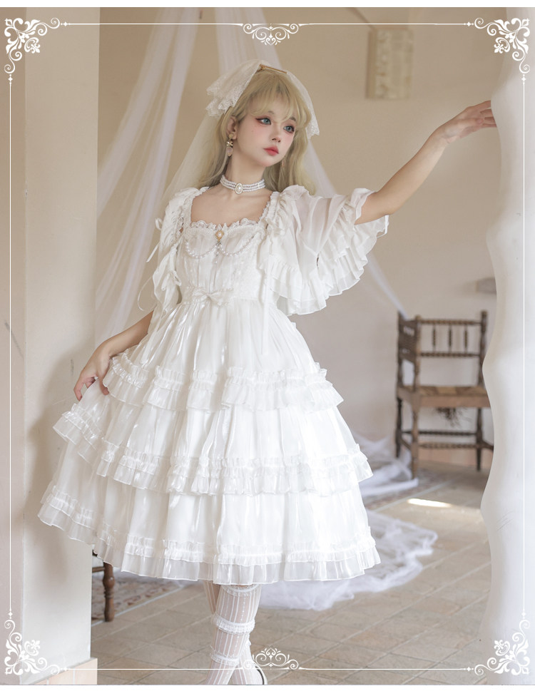 Оригинальное дизайнерское элегантное белое платье, стиль Лолита, Lolita Jsk, юбка-пачка