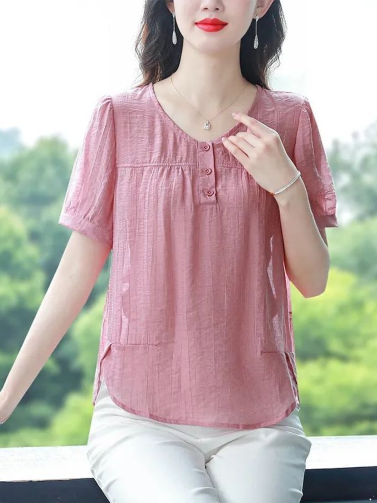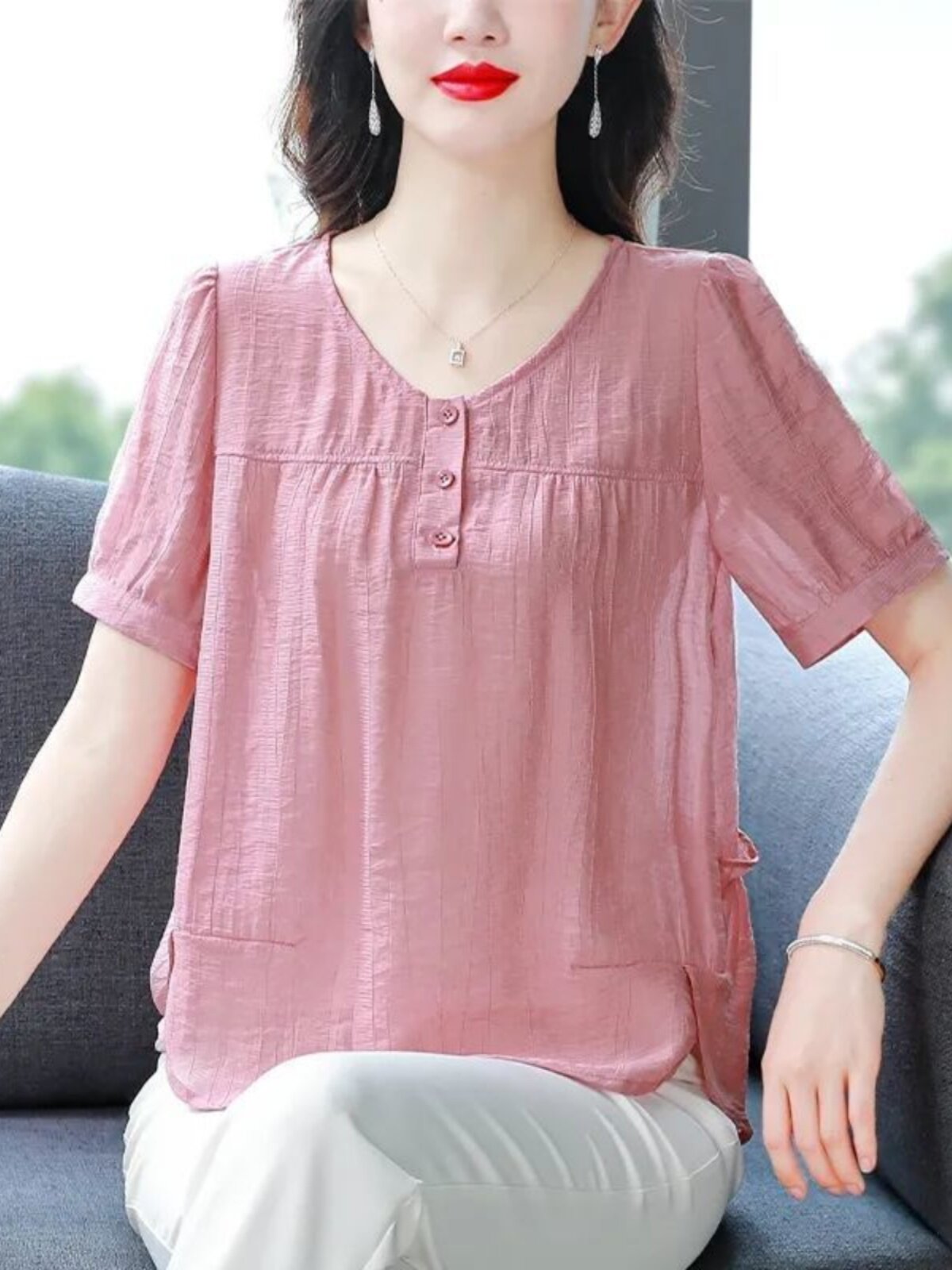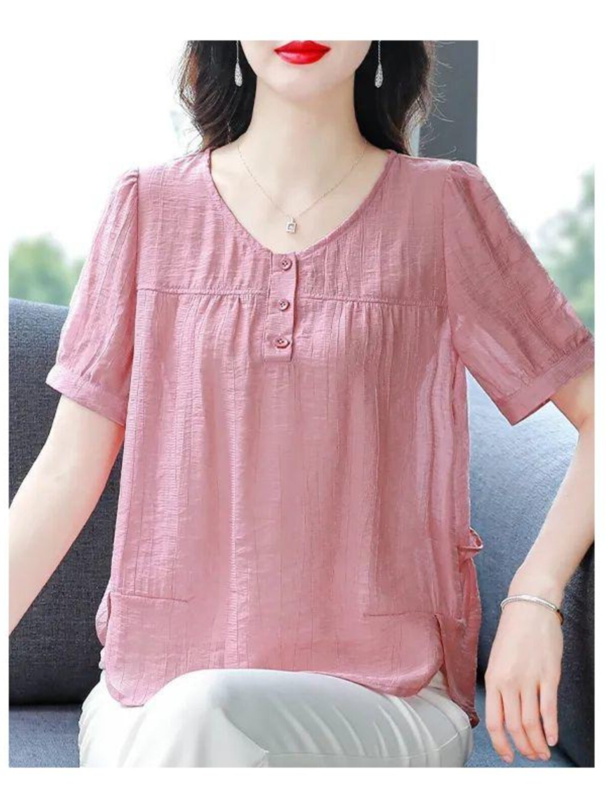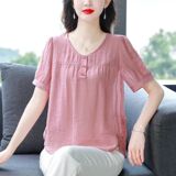 Легкая и тонкая летняя однотонная футболка с коротким рукавом с круглым воротником, в корейском стиле