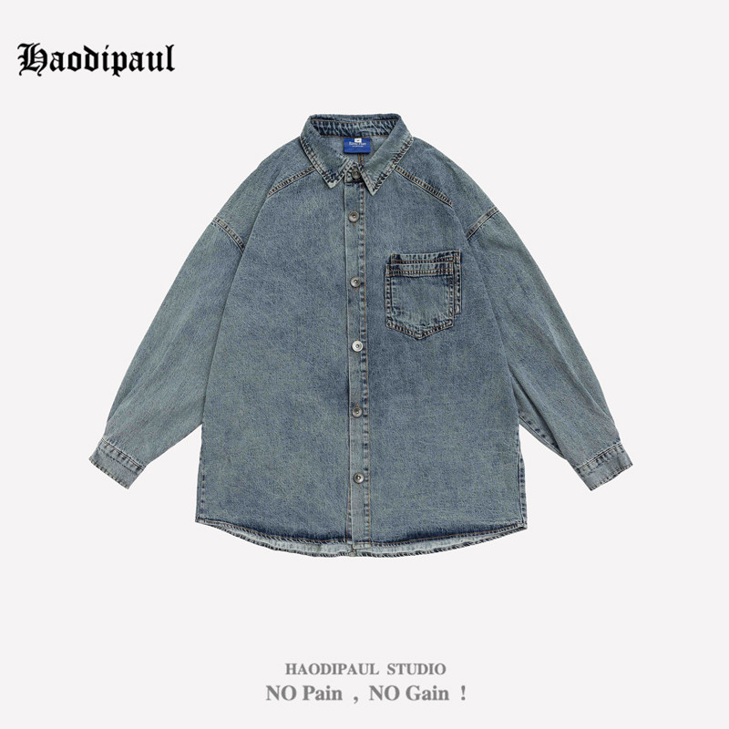 Ретро джинсовая рубашка для отдыха, в американском стиле, оверсайз