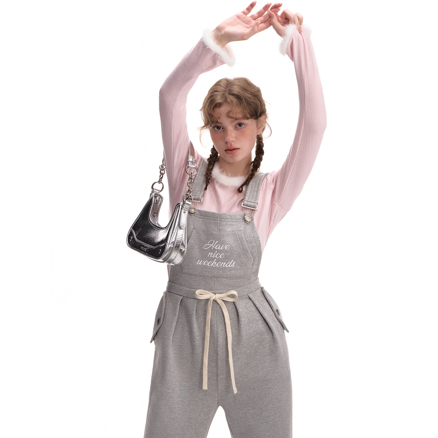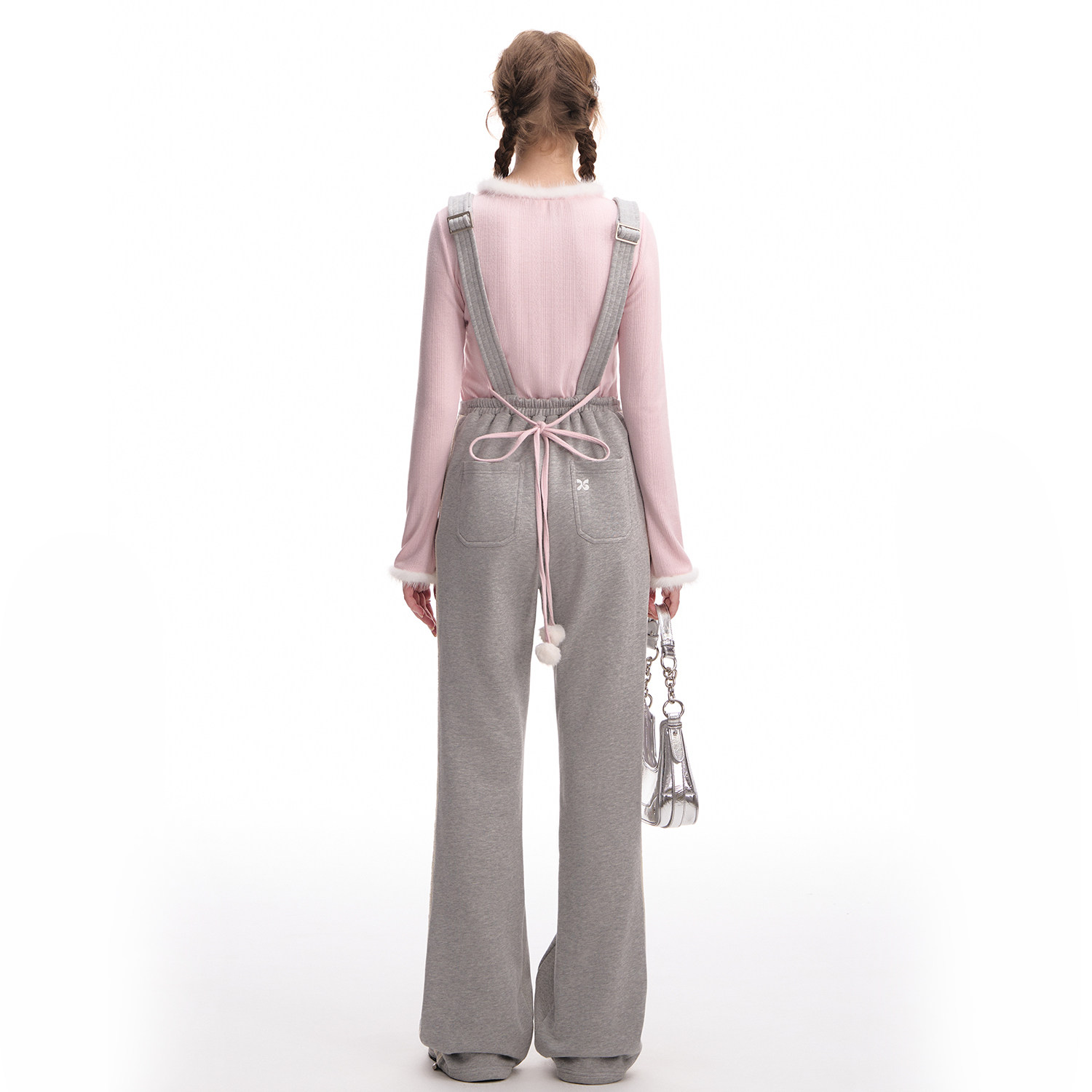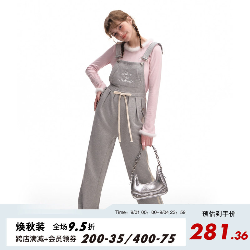 Весенний комбинезон, штаны, с вышивкой, высокая талия, свободный прямой крой