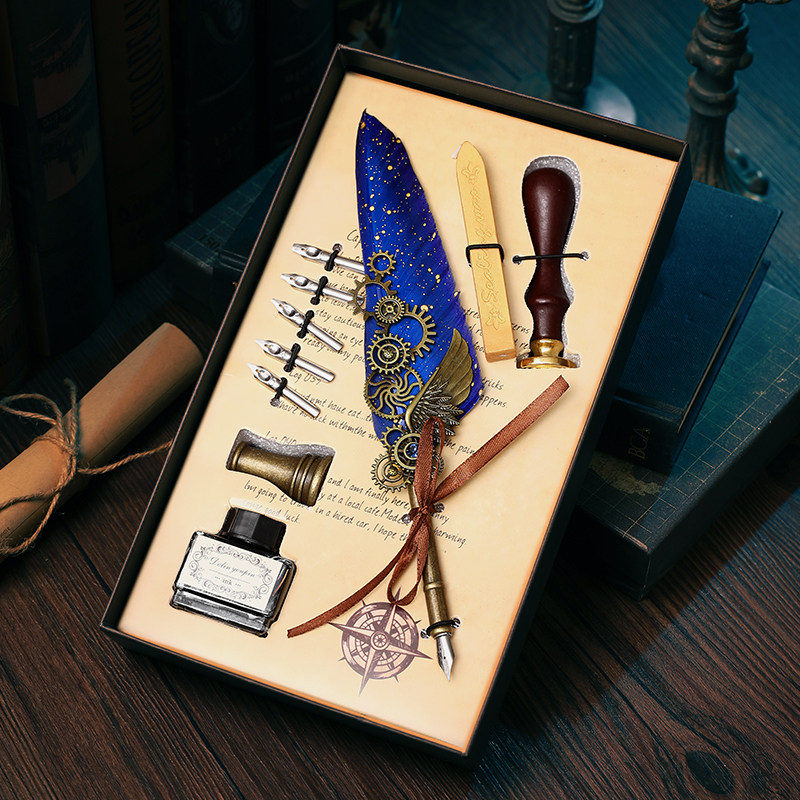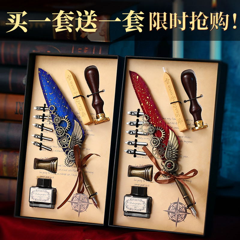 Кисть для письма, ретро ручка, оригинальная печать, механическая подарочная коробка, детский комплект, европейский стиль, в стиле панк, подарок на день рождения