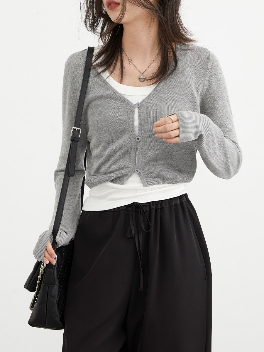 Осенний трикотажный тонкий кардиган, базовый топ с чашечками