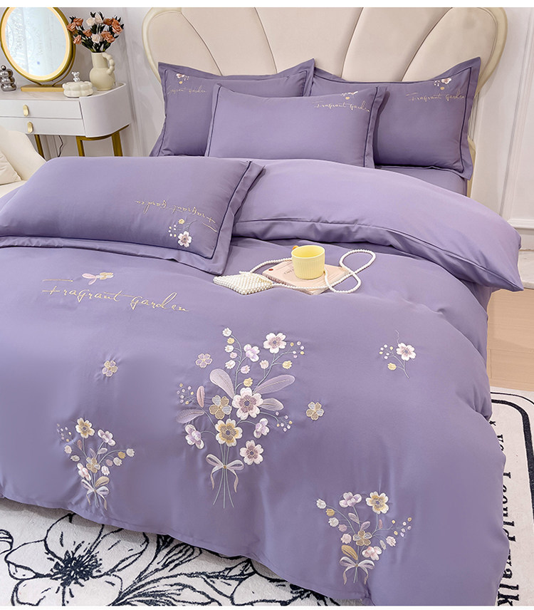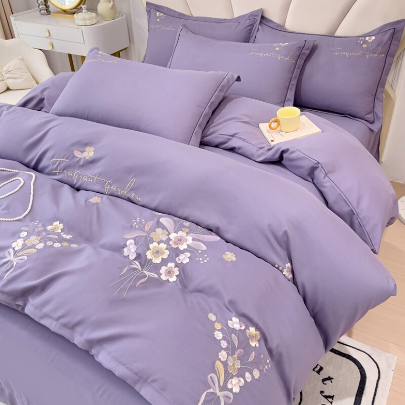 Хлопковый комплект, простыня, элитный пододеяльник, 4 предмета, увеличенная толщина, с вышивкой, простой и элегантный дизайн, постельные принадлежности