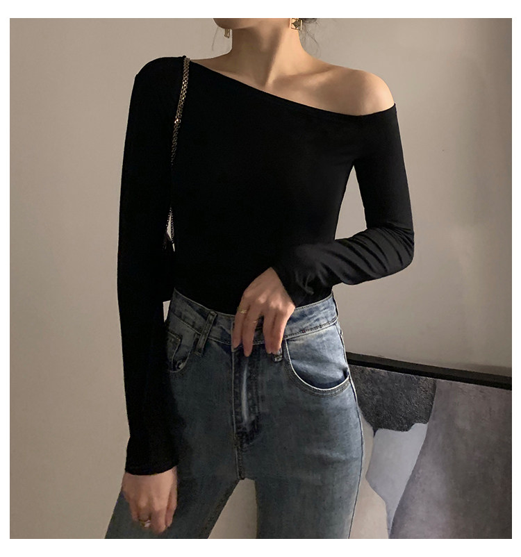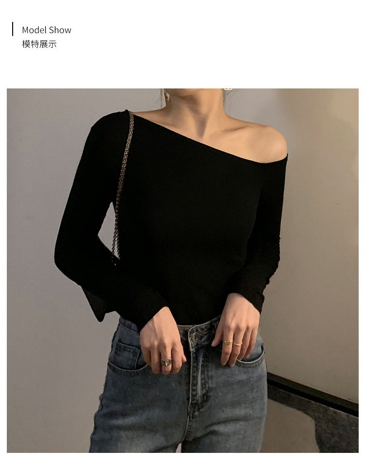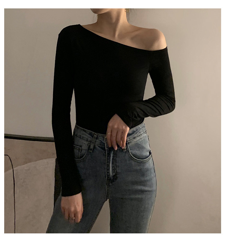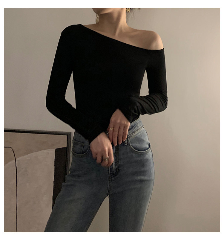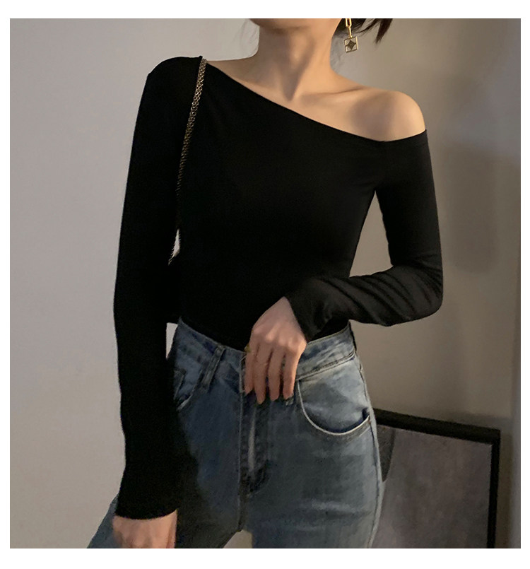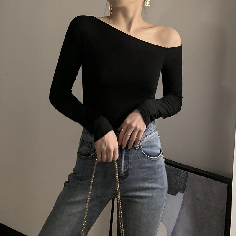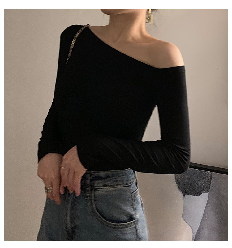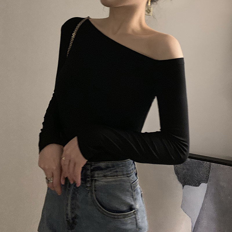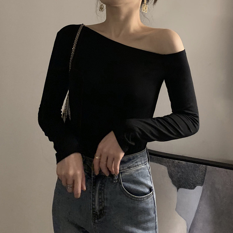 Черная весенняя сексуальная футболка, дизайнерский лонгслив, открытые плечи, тренд сезона