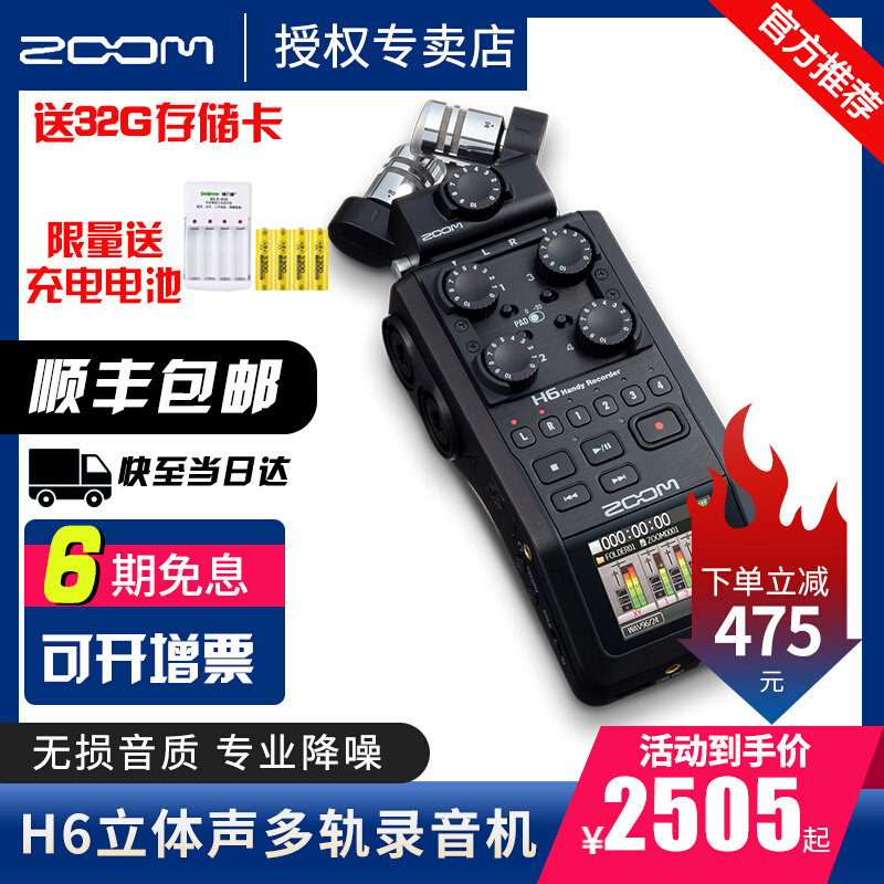 Zoom Recorder H6 Портативная портативная портативная смеситель цифровой рекордер записывает SLR Синхронная запись Внутренняя запись